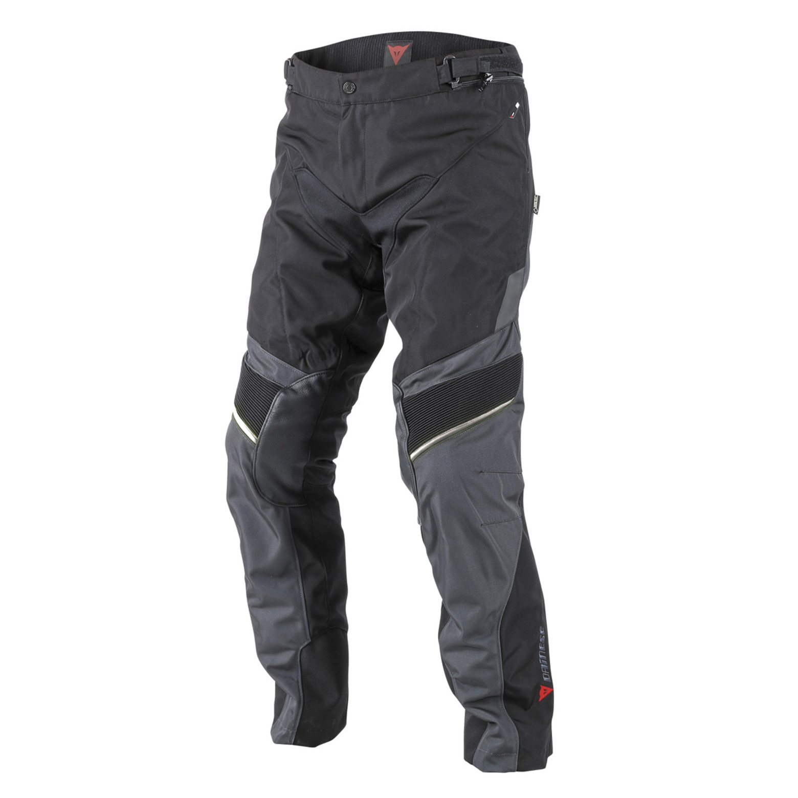 Теплые вставки из натуральной кожи Ткань D-Shield Вставки из ткани 3D-Stone на икрах Мягкие композитные протекторы, сертифицированные по Европейскому Стандарту EN 1621.1 Мягкие протекторы Pro-Shape по бокам, сертифицированные по Европейскому Стандарту EN 1621.1 Молния на икре Эластичная ткань в паховой области Эластичные вставки на коленях Регулировка талии Система крепления куртки к штанам Дышащая водонепроницаемая мембрана GORE-TEX Внешняя ткань обработана и обладает водонепроницаемыми свойствами Съемная тепловая подкладка Вентиляционные отверстия Quick Shift на бедрах Светоотражающие вставки Штаны сертифицированы по Европейскому Стандарту CE - Cat. II - 89/686/EEC Directive
