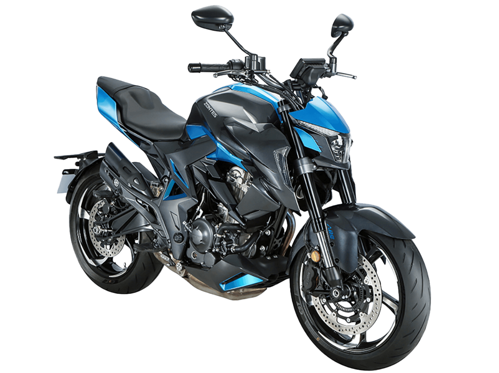Мотоцикл ZONTES ZT350-R – современный нейкед со стремительным и дерзким дизайном. Хорошо подходит как для поездок в городской среде и маневрирования в межрядье.Силовая установка представлена одноцилиндровым 4-тактным двигателем ZT184MP с 4 клапанами и 2 верхними распредвалами. Двигатель имеет объём 348 см³ и обеспечивает мощность в 39 л.с. Оснащён инжектором BOSCH и системой жидкостного охлаждения. Механическая коробка передач имеет 6 ступеней и схему 1-N-2-3-4-5-6. Запуск двигателя осуществляется с помощью бесключевого доступа.Ёмкость топливного бака 15 литров.Колёса представлены литыми алюминиевыми дисками диаметром 17 дюймов. На мотоцикл установлены датчики давления в шинах, показатели от которых выводятся на приборную панель. Для подвески спереди используется телескопическая вилка, сзади – моноамортизатор. Гидравлические дисковые тормоза произведены испанской компанией J.JUAN, входящей в холдинг BREMBO.Для освещения используется яркая LED-оптика, а приборная панель представлена цифровым дисплеем. Имеется 2 USB-порта.Габариты мотоцикла 2030х795х1120 мм. Колёсная база 1390 мм. Высота по седлу 795 мм. Вес 165 кг.Комплектация и внешний вид мотоцикла могут отличаться в зависимости от поставки. Изображение на сайте не гарантирует наличие тех или иных опций. Уточняйте информацию при оформлении заказа.
