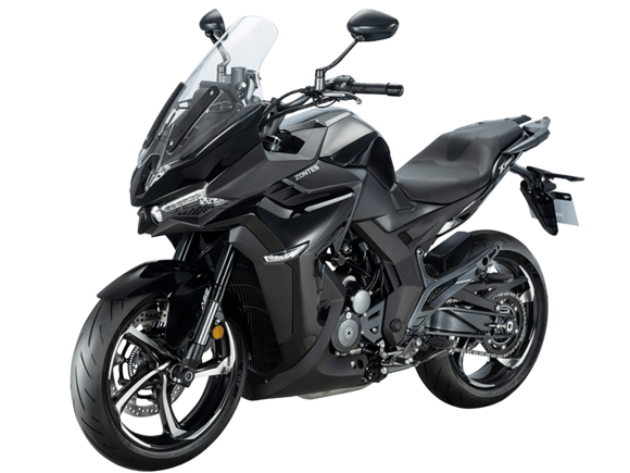 Мотоцикл ZONTES ZT350-V1 – дерзкий круизёр с современным дизайном и классической геометрией. Хорошо подходит как для повседневных поездок по городу, так и для покорения дальних маршрутов.Силовая установка представлена одноцилиндровым 4-тактным двигателем ZT184MP с 4 клапанами и 2 верхними распредвалами. Двигатель имеет объём 348 см³ и обеспечивает мощность в 39 л.с. Оснащён инжектором BOSCH и системой жидкостного охлаждения. Механическая коробка передач имеет 6 ступеней и схему 1-N-2-3-4-5-6. Запуск двигателя осуществляется с помощью бесключевого доступа.Ёмкость топливного бака 15 литров.Колёса представлены литыми алюминиевыми дисками диаметром 17 дюймов. На мотоцикл установлены датчики давления в шинах, показатели от которых выводятся на приборную панель. Для подвески спереди используется телескопическая вилка, сзади – моноамортизатор. Гидравлические дисковые тормоза произведены испанской компанией J.JUAN, входящей в холдинг BREMBO.Для освещения используется яркая LED-оптика, а приборная панель представлена цифровым дисплеем. Рычаги тормоза, сцепления и лапки КПП можно отрегулировать. Имеется 2 USB-порта.Габариты мотоцикла 2080х860х1150 мм. Колёсная база 1430 мм. Высота по седлу 765 мм. Вес 176 кг.