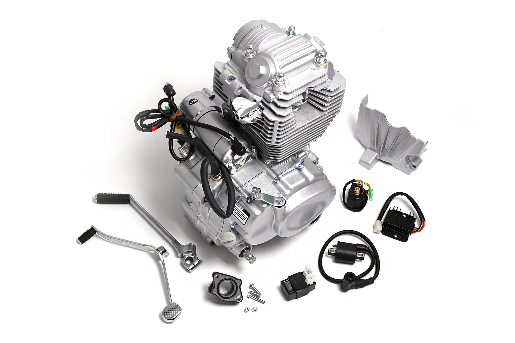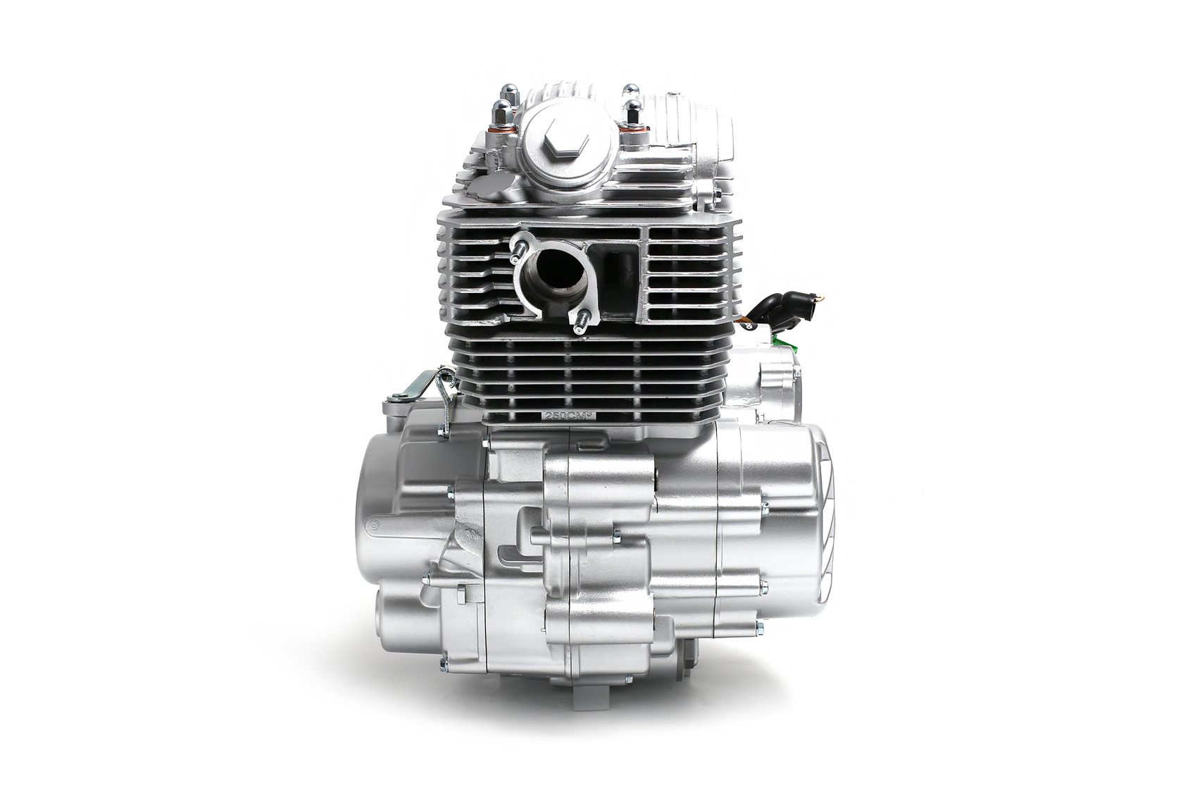 Двигатель для мотоцикла 250см3 172FMM-3A CB250-F (72x61,4) Zongshen грм цепь, 5скОдноцилиндровый четырехтактный двигатель 172FMM-3A с воздушным охлаждением предназначен для использования в легкой мототехнике (эндуро, дорожные мотоциклы) Объем 249.99 см³ (≈250 см³) относит его к категории средних двигателей, подходящих для городской езды или умеренных нагрузок.Ключевые характеристики и анализКонструкцияOHC (верхнее расположение распредвала): Повышает эффективность ГРМ, снижает инерцию клапанов, что улучшает работу на высоких оборотах.Цепной ГРМ: Надежнее и долговечнее ременного, но требует периодической регулировки.Воздушное охлаждение: Простота и легкость, но ограничивает продолжительные нагрузки (перегрев при экстремальной эксплуатации).Геометрия цилиндраДиаметр поршня: 72 мм, ход: 61.4 мм.Отношение хода к диаметру: 0.85 — близко к "квадратному" двигателю, что обеспечивает баланс между крутящим моментом и возможностью работы на средних оборотах.Степень сжатия 9.25:1Оптимальна для стандартного бензина (АИ-92), что снижает эксплуатационные расходы.Трансмиссия и запуск5-ступенчатая КПП: Широкий диапазон передач для адаптации к разным условиям (город, трасса).CDI-зажигание и два стартера: Надежный запуск в любых условиях. Электростартер удобен, кикстартер — резервный вариант.Вес и комплектацияВес 32 кг — легкий, подходит для маневренных транспортных средств.Базовая комплектация включает все необходимое для установки (карбюратор PZ30, коллектор, реле), что упрощает интеграцию.ПреимуществаПростота и надежность: Отсутствие балансирного вала и воздушное охлаждение минимизируют сложность конструкции.Экономичность: Низкий расход топлива благодаря умеренной степени сжатия и CDI-зажиганию.Универсальность: Подходит для мопедов, легких мотоциклов, а также стационарной техники.НедостаткиВибрации: Отсутствие балансирного вала может вызывать дискомфорт на высоких оборотах.Ограничения охлаждения: Не рекомендуется для длительных нагрузок (например, горные дороги или перевозка грузов).Карбюратор PZ30: Может требовать частой настройки в сравнении с инжекторными системами.Рекомендации по применениюДля чего подходит:Городские мотоциклы / эндуро /Легкие внедорожные мотоциклы.Модернизация:Замена карбюратора на более точный (например, NIBBI) для повышения КПД.Использование виброгасящих креплений для комфорта.ВыводДвигатель 172FMM-3A — удачный компромисс между мощностью, весом и надежностью. Он идеален для повседневной эксплуатации в условиях, где не требуются экстремальные нагрузки. Однако при интенсивном использовании стоит учитывать его ограничения по охлаждению и вибрациям.