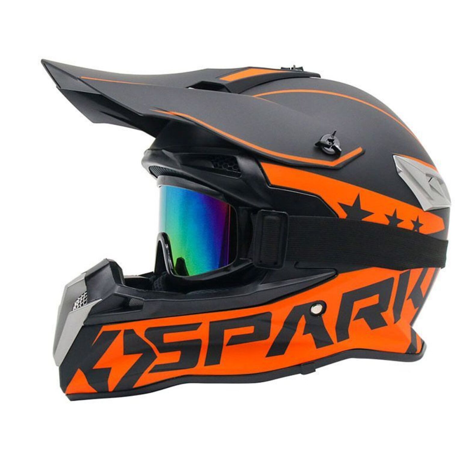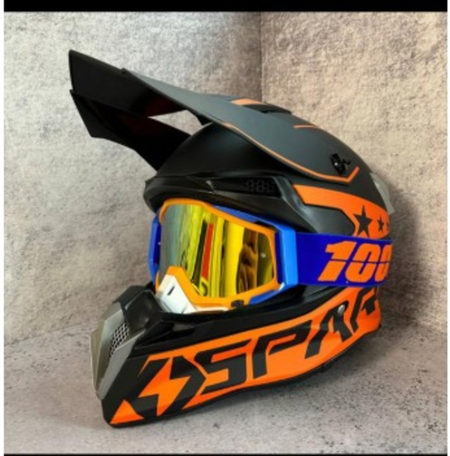 Шлем кроссовый Spark, Черный/Оранжевый, M (в комплекте с очками 100%)