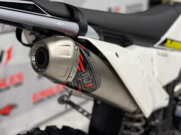 Мотоцикл AJERRA SAGAI C10 YB300H — это современный эндуро-байк, разработанный для уверенной езды как по пересечённой местности, так и по лёгкому бездорожью. Прочная рама К10 завода AJ1, копия KTM 2024 года, обеспечивает стабильность и точность управления в любых условиях, а качественный пластик в стиле Husqvarna 2024 года добавляет динамичный и стильный внешний вид. Двигатель Loncin YB300H 176 FMN с воздушным охлаждением демонстрирует надёжную работу, стабильную тягу и простоту обслуживания. В сочетании с карбюратором Nibbi Racing PWK 34 Black он обеспечивает точную подачу топлива и отзывчивость на газ, что делает мотоцикл удобным для активной езды и тренировок. Подвеска модели тщательно продумана: передняя вилка HTW SCC 930 мм с одним картриджем и задний амортизатор HTW 2450 с прогрессией гарантируют плавность хода и контроль над мотоциклом на неровных поверхностях. Алюминиевый маятник и фрезерованные траверсы AJ1 2024 повышают прочность конструкции и долговечность техники. Эргономика и управление на высоте: усиленный руль AL7075, алюминиевые подножки AJ1 2024 (копия S3), ручка газа Nibbi и грипсы Lock ON обеспечивают комфорт и надёжность в любых условиях. Светодиодная оптика 2 EYE LED Generation 4 (50W) позволяет безопасно ездить даже в сумерках, а алюминиевые обода UNISON 7116 и фрезерованные ступицы повышают прочность колёсной базы. Мотоцикл оборудован цепью KMC 520 Pro, алюминиевой ведомой звездой AL7075 51 зуб, а также выхлопной системой AJ1 2025, что делает его управляемым и надёжным при любых нагрузках. Для удобства и защиты техники предусмотрены счётчик моточасов, защита рамы и мотора, стропы передние и задние, заглушки руля. Сиденье AntiSkid обеспечивает комфортную посадку и предотвращает скольжение. Высота по седлу составляет 940 мм, что делает AJERRA SAGAI C10 YB300H удобным для райдеров среднего и высокого роста. Этот мотоцикл сочетает в себе высокотехнологичные комплектующие, надёжность и стильный дизайн, подходя как для спортивных покатушек, так и для любительского эндуро..