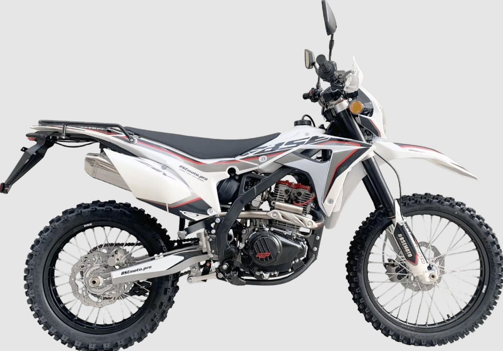 BSE Z6 Y - идеальный мотоцикл для долгих эндуро путешествий! Благодаря наличию дополнительного топливного бака на 4 литра, удобного сиденья и пассажирских подножек. Имеется возможность закрепить поклажу на задний багажник.BSE Z6 Y комплектуется всем необходимым для передвижения по асфальту: возможность постановки на учет, электростартер, яркая LED фара головного света и задний стоп сигнал, наличие поворотников и зеркал заднего вида, широкий спортивный алюминиевый руль. Благодаря ЖК приборной панели вы всегда будете знать о всех главных параметрах мотоцикла. Мощная гидравлическая тормозная система HSК Racing остановит байк в любых условиях.Z6 Y - идеально сбалансированный, устойчивый, мощный эндуро мотоцикл на прочнейшей усиленной стальной раме. Сердце Z6 Y– мощный, эластичный и надежный 250 кубовый Zongshen ZS 172 FMM мощностью 21 лс. Система подачи топлива – проверенный карбюратор Nibbi 28.Крепкий, надёжный и неприхотливый BSE Z6 Y обладает всеми качествами настоящего эндуро. Подойдёт, как и для среднего уровня катания, так и для продвинутого райдера. Z6 Y оснащается регулируемой подвеской MOJO Racing c большими ходами, рычагам задней прогрессии и вилкой “перевертышем”. Алюминиевые колёсные диски с буксаторами, внедорожная резина, усиленная цепь, датчик моточасов, защита рук – ваши возможности на бездорожье безграничны!Наслаждайтесь преимуществами BSE Z6 Y на любых покрытиях.