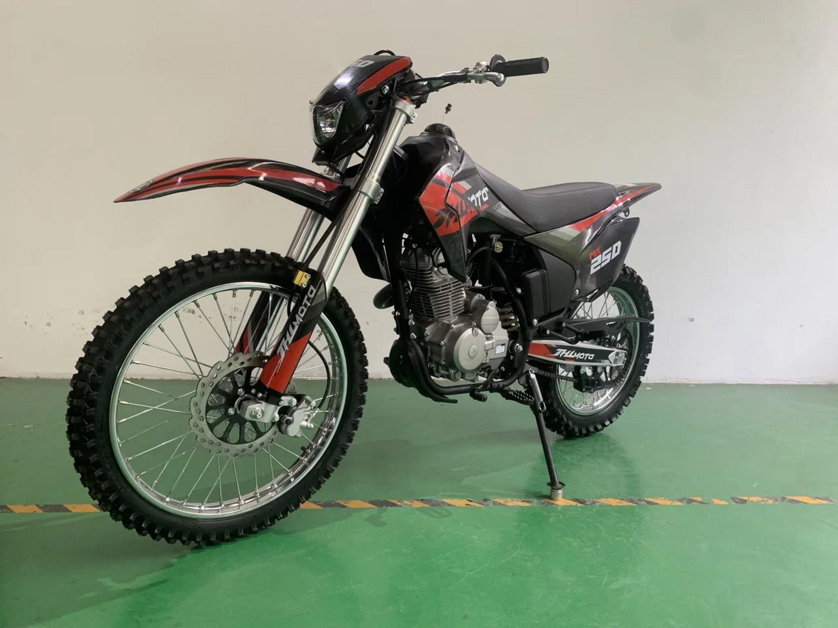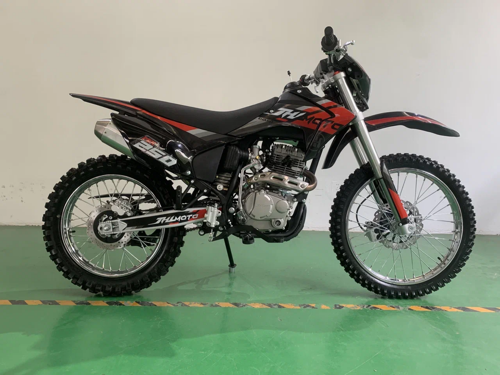 JHLMOTO 250 – лучший спортивный мотоцикл для новичка. Конструктивные особенности байка подходят по параметрам для первопроходца в эндуро. Об этом далее.Почему MX300 подходит новичкамКак уже упоминалось, байк относится к классу эндуро. В свою очередь, эндуро тепло относится к новичкам и располагает комфортными для них конфигурациями. Например, MX300:Содержит вакуумный карбюратор, отличающийся стабильным запуском. То, что нужно в спорте, где важна не скорость, а проходимость.Мягкая подвеска, впитывающая энергию при жестких приземлениях. Сглаживает неровности под колесами, что облегчает управление байком.Широкое сидение. Отличное решение как для “покатушек” с друзьями в лесу, так и для поездки по асфальтовым дорогам.Отсутствие зависимости от электроники. Это не электро мотоцикл. На байке нет ни приборной панели, ни поворотников, ни других бесполезных для него механизмов. Но есть электростартер.Качественные рукоятки руля, что большое достоинство для мотоцикла с такой низкой ценой.Подходит для человека со средней комплекцией тела. Крупному человеку на нем также будет комфортно.Также, как и любой эндуро, мотоцикл имеет спереди фару. Поскольку эндуро байкам разрешено ездить по асфальтовым дорогам, свет будет полезным инструментом. Мало того, есть и любители “поэндурить” вечером-ночью, для них освещение будет особенно ценно.