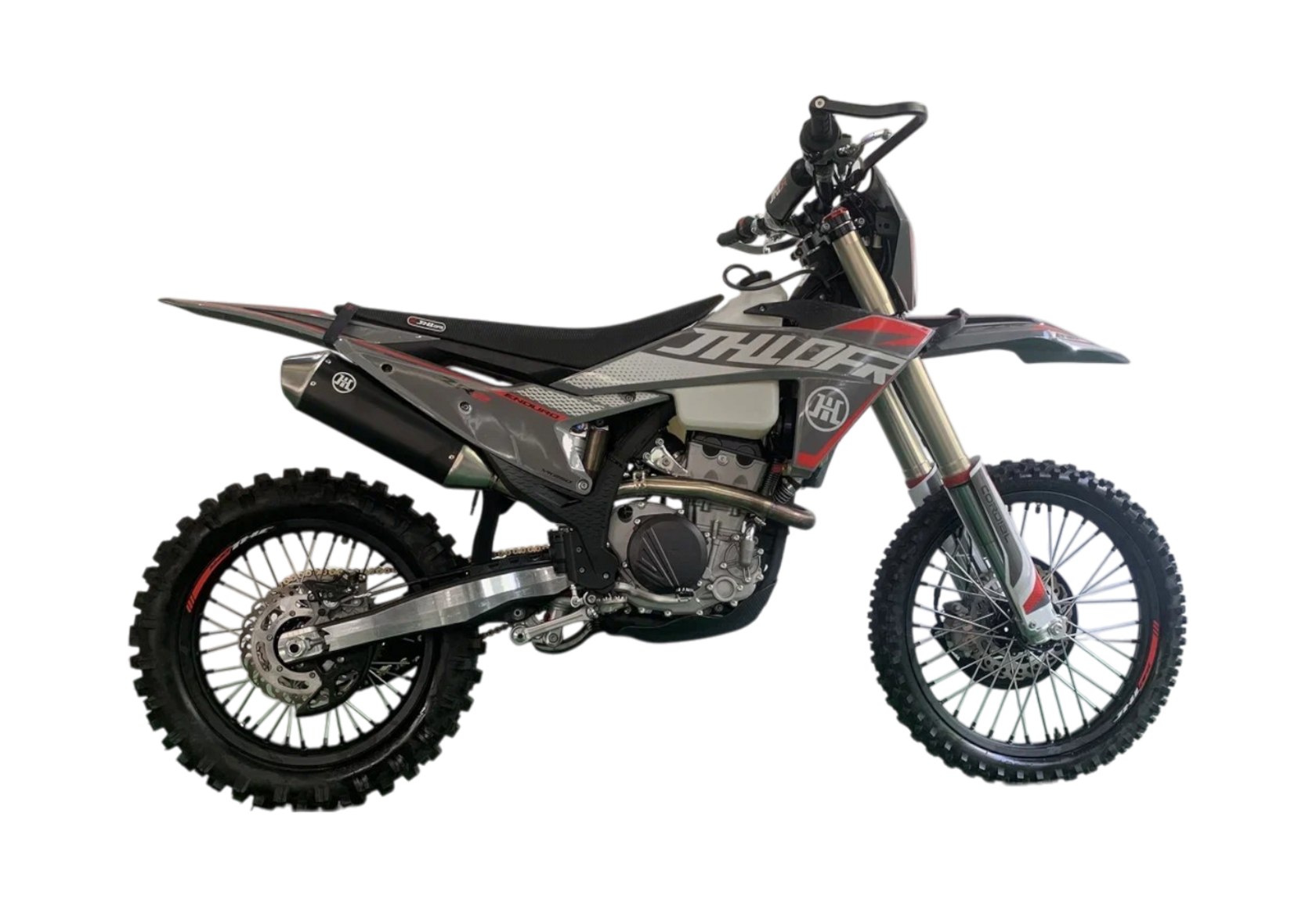 JHLmoto – создан профессиональными мотоциклистами, участвующими в соревнованиях по всему миру! Благодаря этому каждая модель сочетает в себе идеальный баланс мощности в веса в зависимости от своего класса. JHLmoto работает с лучшими производителями комплектующих, такими как KKE, ANJIE, CNC, Unison и уверены в своих мотоциклах на 100%! Убедитесь и вы! Рама и подвескаРама мотоциклов проекта K8 – самая надежнейшая рама в мире эндуро и кросс, выполнена из хромолибденовой стали, покрыта раптором! Максимальный запас прочности и защиты от коррозии! Держит раму на себе подвеска перевернутого типа спереди и моноамортизатор сзади от KKE, с возможностью тончайшей настройки для ваших задач и целей! В таком сочетании люфты подвески отсутствуют – при резком страгивании с места мотоцикл не рыщет, стоит ровно, уверенно! Свет и электроникаГоловная фара с пятью светодиодными линзами светит очень ярко и позволяет продолжить покатушки, либо просто вернуться домой в темное время суток. Приборная панель ЖК отображает всю текущую информацию о состоянии мотоцикла. Вся электроника имеет влагозащищенные разъемы, которые абсолютно исключают попадание воды и образование коррозии! Питает электронику аккумулятор, Li-ion, общим весом 200 грамм!!! Двигатель и карбюраторJHLmoto использует только проверенные временем двигатели от Zongsheng в своих моделях – самого крупного завода по производству двигателей, которые питаются от карбюраторов Nibbi Racing, самых конкурентных карбюраторов в мире кросс и эндуро мотоциклов! Так же в линейке мотоциклов JHL есть версии на инжеторе – за впрыск отвечает EFI Bosch, самый лучший EFI! Фильтрацию воздуха обеспечивает система Nibbi Racing. Колеса и тормозаКолесные диски JHLmoto использует только бренда Unison – это алюминево-кремневые диски, максимально легкие и прочные! Резина на дисках в зависимости от характера мотоцикла – KENDA/Cordial. Буксаторы уже утановлены и они композитные – для уменьшения веса. Останавливают их тормозные вентилируемые диски KTM с тормозной системой ANJIE, все это закрыто кожухами от PRO CAKEN.