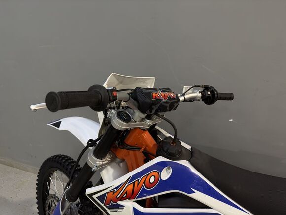 Мотоцикл KAYO K1 250 MX – “народная” версия внедорожного мотоцикла от компании KAYO. Идеальный снаряд для внедорожного экстрима, представляющий собой оптимальный баланс производительности и технической оснащённости, поэтому он идеально подходит как новичкам, так и опытным райдерам. Удобный, простой и надёжный мотоцикл, который полностью оправдывает свою цену.Мотоцикл оснащён одноцилиндровым 4-тактным двигателем воздушного охлаждения (ZONGSHEN ZS172FMM) объёмом 249 см3, который обеспечивает высокую мощность (21 л.с.) и крутящий момент, что позволяет развивать большую скорость и с лёгкостью преодолевать трассы со сложным рельефом. Карбюраторная система подачи топлива с карбюратором NIBBI PE30 обеспечивает бесперебойную работу техники в самых жёстких условиях эксплуатации, простоту и лёгкость в обслуживании, а также неприхотливость к качеству топлива. Аппарат оснащён 5-ступенчатой механической коробкой передач с классической схемой “1-N-2-3-4-5”.Усиленная рама из хром-молибденового сплава и подвеска позволяют эффективно амортизировать удары при езде по неровностям и препятствиям на трассе. Передняя подвеска телескопическая вилка перевёрнутого типа от фирмы KKE длиной 800 мм, задняя — нерегулируемый моноамортизатор 360 мм, рассчитанный на высокие нагрузки до 900 LBS, также произведённый компанией KKE. Мотоцикл оснащён классическими спицованными колёсами диаметром 18 и 21 дюйм. Колёса имеют усиленные обода из алюминиевого сплава и буксаторы. Эффективное и безопасное замедление с любых скоростей обеспечивают гидравлические дисковые тормоза.Мотоцикл достаточно компактен и имеет вес всего в 105 кг, поэтому он комфортен в эксплуатации одновременно и для мужчин среднего телосложения, и для девушек. Аппарат оснащён системой запуска двигателя при помощи кнопки электростартера или при помощи рычага кик-стартера.Высококачественная износостойкая резина с развитым протектором отлично держит дорогу на различных типах покрытия и в самых разных поворотах. Сиденье эргономичной формы покрыто антискользящим материалом.K1 250 MX сочетает в себе отличные технические характеристики, комфорт и надёжность, что позволяет вам ощутить настоящую свободу на любой трассе