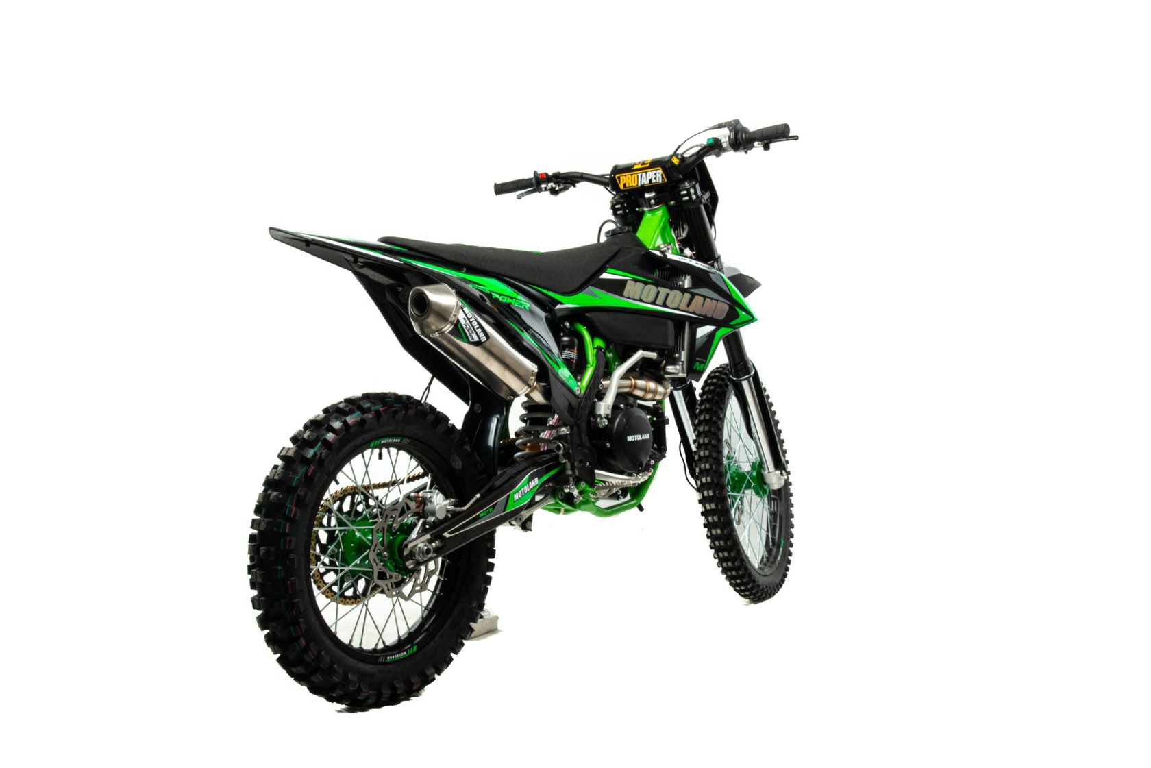 Мотоцикл Motoland FX 450 NC- новинка 2022 г.Современный дизайн мотоцикла подчёркивает спортивный характер байка.Установлен мощный двигатель с водяным охлаждением ZONGSHEN 194 MQБольшой ход подвесок для комфортного передвижения по пересеченной местности, которые также позволяют ехать быстро и агрессивноМотоцикл больше предназначен для езды по переченной местности полям и лесам, чем для города из за профиля резины.Он маневренный и удобный,сидение с противоскользящим чехлом.При этом он прост в управлении и неприхотлив в обслуживании и подходит мотолюбителям любого возраста и опыта вождения.Технические характеристикиАнтибуксаторы спереди и сзади для езды на пониженном давлении или защиты от прокручивания камерыВыхлопная труба с Power Bomb и креплениями под пружины и прямоточным глушителем, в котором установлена флейтаПередняя вилка перевернутого типа с регулировкой. Задний амортизатор с регулировкой.Быстрый доступ к воздушному фильтру для комфортного обслуживанияОбновленная тормозная система. Передний суппорт 2х поршневой, задний 1 поршневой.Алюминиевый маятник + подрамникГерметичная проводкаРычаги - "неломайки"Полые осиАлюминиевые звездыУвеличенный диаметр спиц - 5ммУстановлена цепь 520HSУстановлены запчасти NIBBIВысота по седлу 970мм.Вес 125 кг.