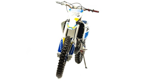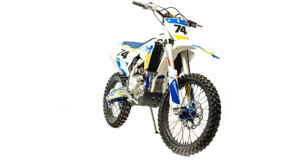 Топовый мотоцикл линейки PWR выглядит соответствующе — стильно и солидно. Без лишнего пафоса, но с уверенностью в собственном превосходстве над аналогами. Как и другие модели PWR, кроссовq 450 кубовый мотоцикл покрыт комбинированным пластиком, который не ломается при сгибании. Все стыки идеально подогнаны, наклейки ровные. Кроссовый мотоцикл доступен в синем цвете — внешний вид кросса подчёркивает несгибаемый характер и нацеленность на бескомпромиссную спортивную борьбу. Длина FS450 NC — 2160 мм, высота по седлу — 960 мм. Хорошее соотношение, которое подойдёт большинству пользователей среднего и большого роста.На кроссовый мотоцикл установлен руль переменного сечения (28 мм в месте крепления и 22 мм на концах под грипсами) с низким подъёмом и с подушкой IGP.