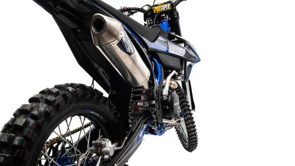 Топовый мотоцикл линейки PWR выглядит соответствующе — стильно и солидно. Без лишнего пафоса, но с уверенностью в собственном превосходстве над аналогами. Как и другие модели PWR, кроссовq 450 кубовый мотоцикл покрыт комбинированным пластиком, который не ломается при сгибании. Все стыки идеально подогнаны, наклейки ровные. Кроссовый мотоцикл доступен в синем цвете — внешний вид кросса подчёркивает несгибаемый характер и нацеленность на бескомпромиссную спортивную борьбу. Длина FS450 NC — 2160 мм, высота по седлу — 960 мм. Хорошее соотношение, которое подойдёт большинству пользователей среднего и большого роста.На кроссовый мотоцикл установлен руль переменного сечения (28 мм в месте крепления и 22 мм на концах под грипсами) с низким подъёмом и с подушкой IGP.