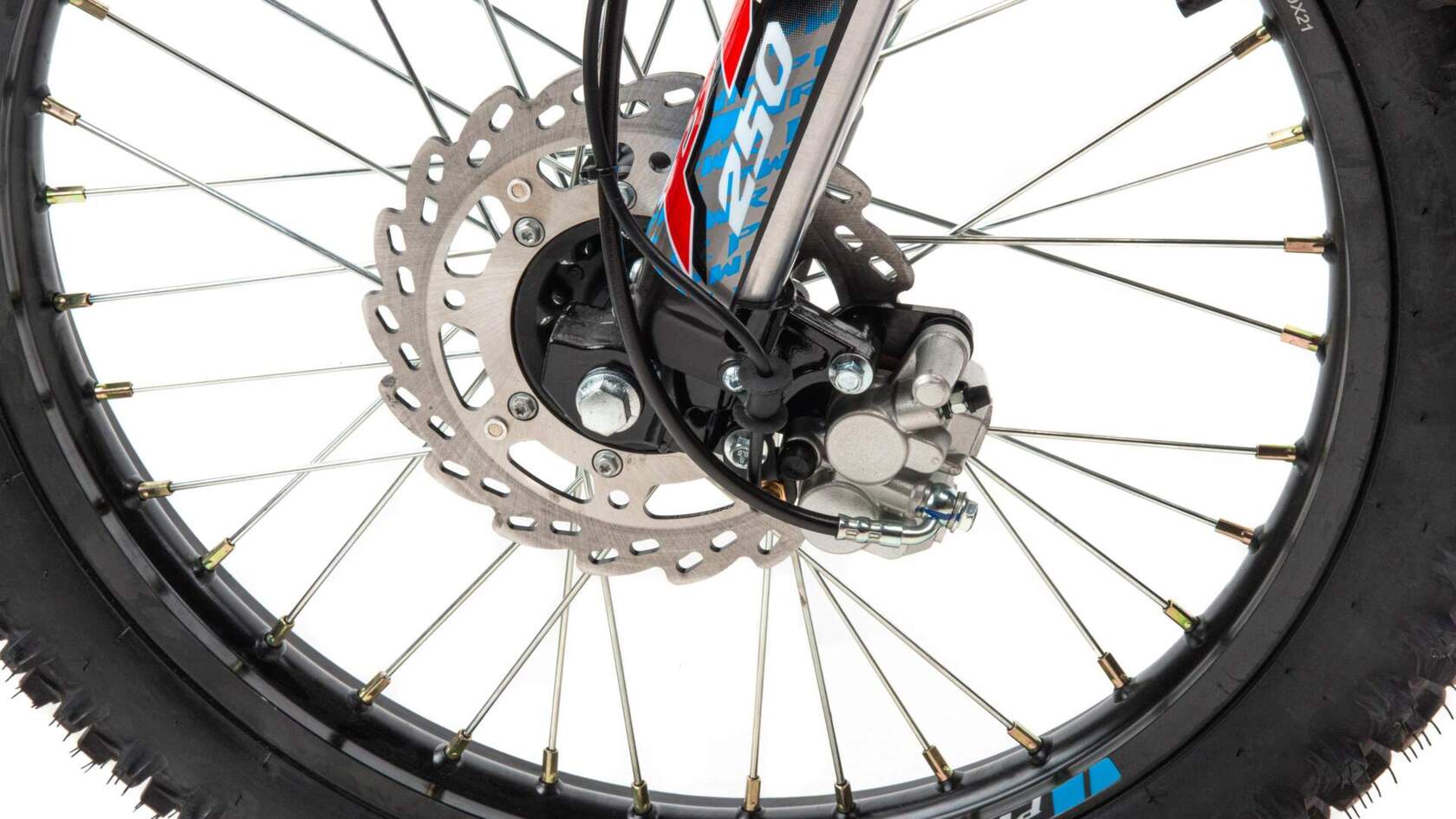 PWR FZ250 - новинка 2022 г. Современный дизайн мотоцикла подчёркивает спортивный характер байка.Установлен мощный 4х клапанный двигатель с воздушным охлаждением ZONGSHEN 172FMM-4VБольшой ход подвесок для комфортного передвижения по пересеченной местности, которые также позволяют ехать быстро и агрессивноВысокий вынос руля которые позволяет комфортно ездить в стойке и полностью контролировать мотоциклМотоцикл больше предназначен для езды по переченной местности полям и лесам, чем для города из за профиля резины.Он маневренный и удобный,сидение с противоскользящим чехлом.При этом он прост в управлении и неприхотлив в обслуживании и подходит мотолюбителям любого возраста,и опыта вождения.Технические характеристики:Антибуксаторы на заднем колесе для езды на пониженном давлении или защиты от прокручивания камеры