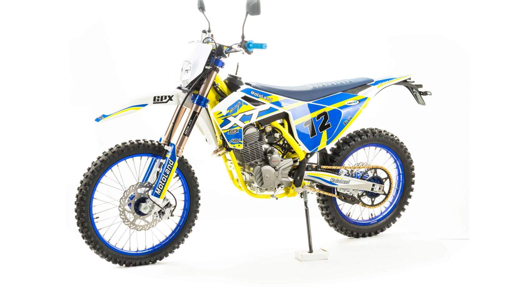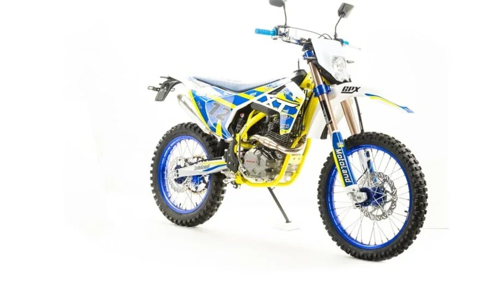 Мотоцикл MOTOLAND XT250 STколеса 21" / 18") – обновленная модель компании MotoLand. С улучшенной подвеской, имеющей настройки сжатия и отбоя переднего и заднего амортизатора. Позволяет передвигаться не только по пересеченной местности но и по дорогам общего пользования Оснащен дополнительным освещением и подворотниками. Мощный 4-х тактный двигатель ZONGSHEN 172FMM мощностью 21 л.с. позволит выжать из мотоцикла максимум. Запуск двигателя производится как кикстартером так и электростартером