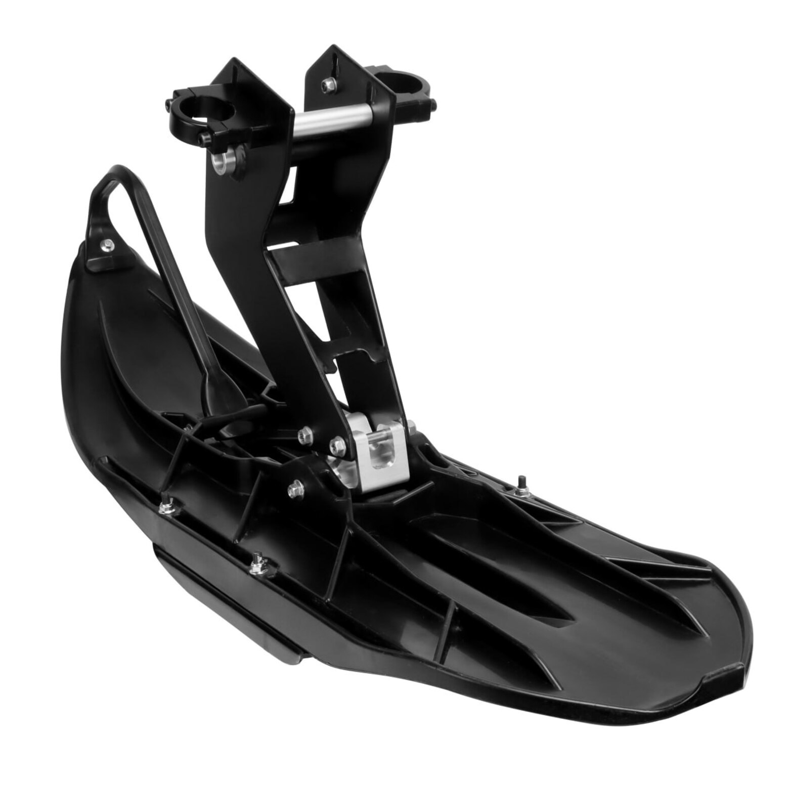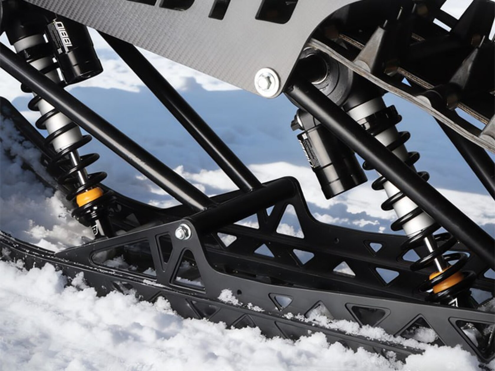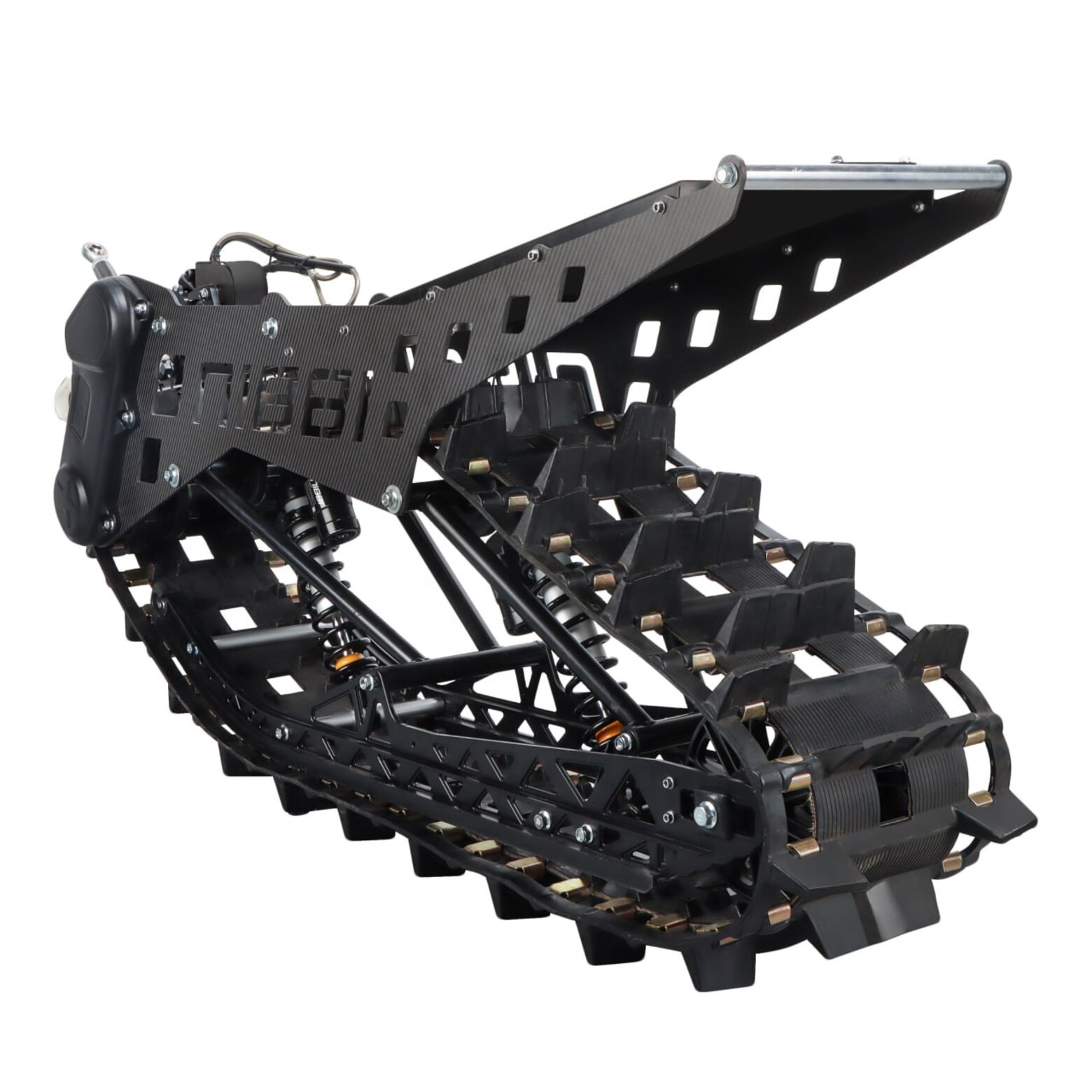 NIBBI Vanguard R-120 — это система переоборудования, которая позволяет превратить кроссовый мотоцикл в сноубайк для экстремальных зимних заездов. Комплект заменяет переднее колесо на лыжу, а заднее — на гусеницу, что открывает новые возможности для покорения снежных просторов.Ключевые преимущества и особенности:Вездеходная гусеничная система: Гусеница размером 3050 × 300 мм с грунтозацепами высотой 50 мм обеспечивает превосходное сцепление и проходимость. Комплект позволяет уверенно двигаться по снегу глубиной от 15 см и преодолевать даже глубокий рыхлый снег до 1,5–2 метров.Подвеска профессионального уровня: Стандартная подвеска R-120 оснащена премиальной технологией амортизации и полной регулировкой. Это позволяет настраивать демпфирование отбоя и сжатия в трех режимах для точного контроля в любых снежных условиях.Проверенный цепной привод: Привод инженерно разработан для максимальной надежности и использует цепь NIBBI 520 HLX2, что гарантирует стабильную передачу мощности как в глубоком снегу, так и на сложных трассах.Полная тормозная система Nibbi: Комплект оснащен собственной гоночной тормозной системой Nibbi, которая обеспечивает мощное и уверенное торможение в любых условиях.Прочная и легкая конструкция: Боковые панели из углеродного волокна снижают общий вес и повышают прочность. Все крепежные элементы заменены на высокопрочные болты с фиксатором резьбы, что исключает риск ослабления даже при экстремальных нагрузках.Технические характеристикиВ таблице ниже приведены основные технические параметры комплекта Vanguard R-120:Параметр ЗначениеРазмер гусеницы 3050 мм × 300 ммВысота грунтозацепов 50 ммШаг грунтозацепов 73 ммВес гусеничного модуля 57.45 кгТормозная система Дисковый тормоз Nibbi, однопоршневойДиаметр тормозного диска 150 ммПодвеска Два амортизатора Nibbi, с двойной регулировкой (отбой и сжатие)Задний ход подвески 85 ммПриводная цепь 520-74LЦепь в редукторе 520-52LМатериал боковых панелей Углеродное волокно (карбон)Рекомендуемый объем двигателя мотоцикла 300 куб. см и болееПрактическая информацияУстановка: Производитель позиционирует R-120 как комплект для самостоятельной установки, для чего предоставляются понятные пошаговые инструкции и видеоуроки. Однако для достижения оптимальной производительности рекомендуется обратиться к профессионалам.Обслуживание: Требуется регулярная чистка, проверка болтов и осмотр тормозов после нескольких поездок. Высокопрочная система креплений и герметичные компоненты подвески минимизируют общие затраты на обслуживание.