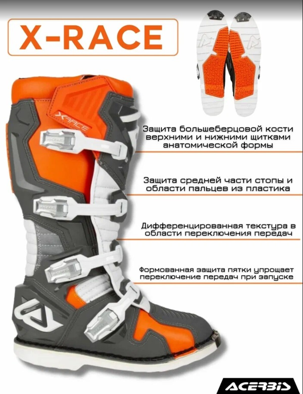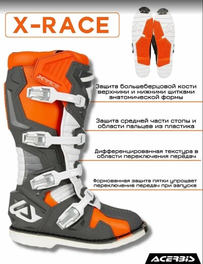 Главная ... Кроссовые мотоботы Мотоботы кроссовые Acerbis X-RACE Orange/Grey, (р.42)