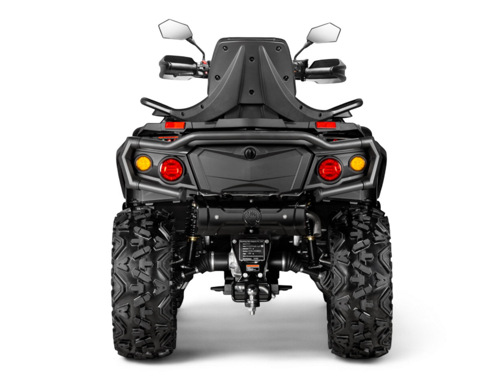 Комплектация Комбинация приборов Электронный ключ зажигания, LCD приборная панель 6,86 дюйма с индикацией основных параметров: вкл/выкл полного привода, индикацией уровня топлива, сигналов поворота и аварийной остановки, подсветки, переключение режимов усилителя руля, информация о техническом обслуживании. Лебедка Лебедка с синтетическим тросом и тросоукладчиком, тяговое усилие 1500 кг Элементы защиты Ветрозащита рук на руле, расширители колесных арок, передний и задний бампер, замок блокировки рулевого вала Дополнительное оборудование Электроусилитель руля, cветодиодная оптика, дополнительный свет, фаркоп с электроподготовкой, звуковой сигнал, сигналы поворота, зеркала заднего вида, бардачок объемом 2 литра под сиденьем, алюминиевые подножки водителя, эргономичная задняя и передняя багажные площадки, розетка 12 Вольт и USB.