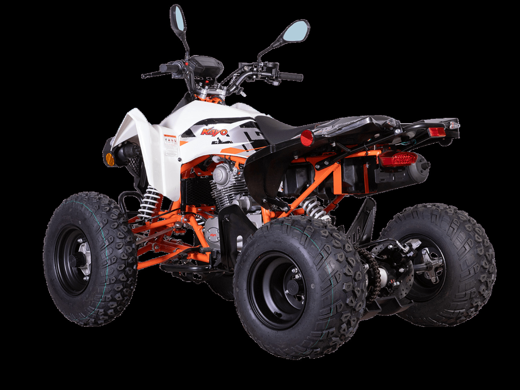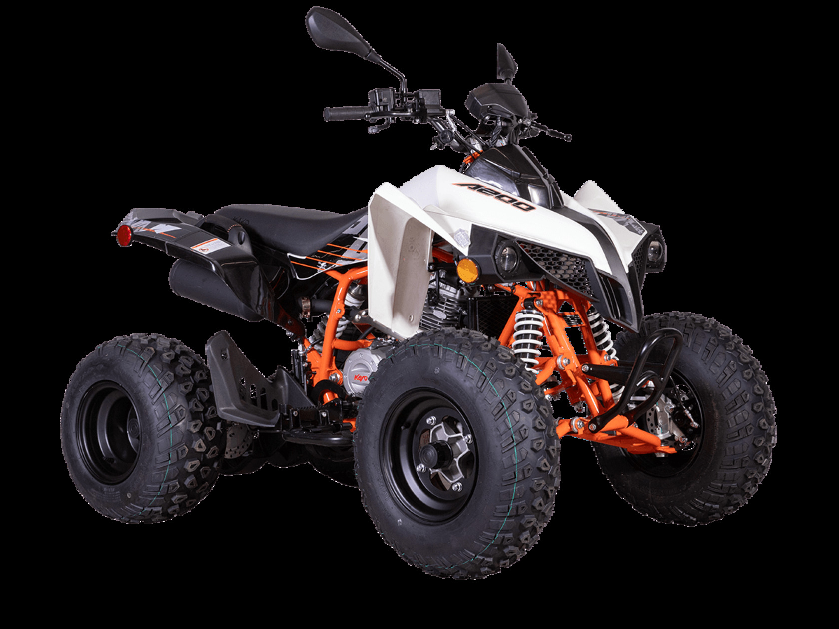 Квадрицикл KAYO A200 – мощный ATV для внедорожного экстрима. Обладает высокими характеристиками, позволяющими справляться с самыми сложными маршрутами. Отлично подходит для начинающих райдеров благодаря автоматической коробке передач и оснащён ПТС, позволяющим использовать квадрицикл на дорогах общего пользования.Квадрицикл оснащён одноцилиндровым 4-тактным двигателем ZONGSHEN ZS165FML с балансирным валом и воздушно-масляным охлаждением. Имеет объём 199 см³ и способен развивать мощность до 16 л.с. За подачу топлива отвечает карбюратор KEIHIN PZ30. Обеспечивает бесперебойную работу в самых жёстких условиях, лёгок в обслуживании и неприхотлив к качеству топлива. Автоматическая коробка передач с 4 ступенями и реверсом имеет схему R-N-1-2-3-4. Ёмкость бака 6 литров.Рама выполнена из хроммолибденового сплава. Колёса имеют диаметр 10 и 9 дюймов. Подвеска представлена регулируемыми амортизаторами длиной 345 мм спереди и 390 мм сзади. За торможение отвечает гидравлическая дисковая система.Квадрицикл оснащён полным комплектом светотехники для поездок в тёмное время суток и по дорогам общего пользования.Габариты квадрицикла 1650х1102х1070 мм, вес 154 кг.