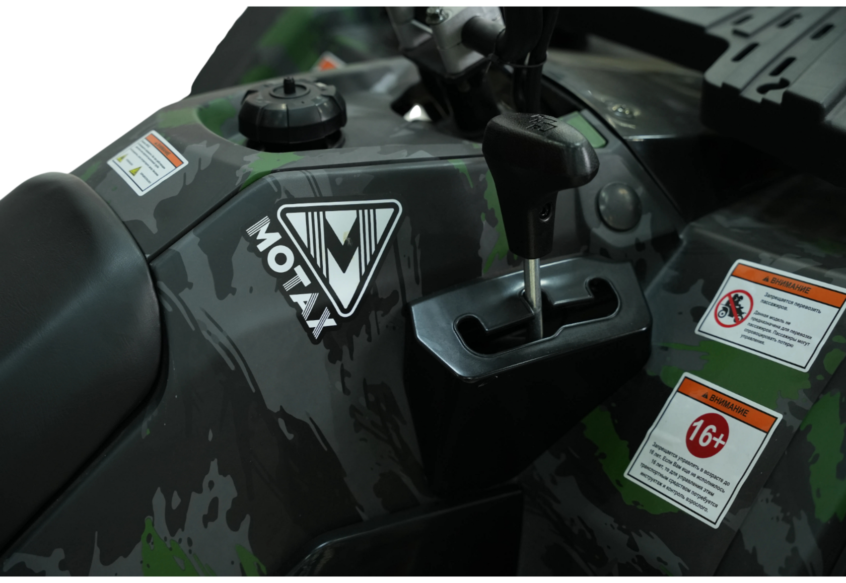 Камуфляжный окрас не поможет подростковому бензиновому квадроциклу затеряться среди окружения, а совсем наоборот – благодаря стильному и яркому дизайну он будет центром внимания и выгодно выделяется среди похожих по характеристикам моделей.