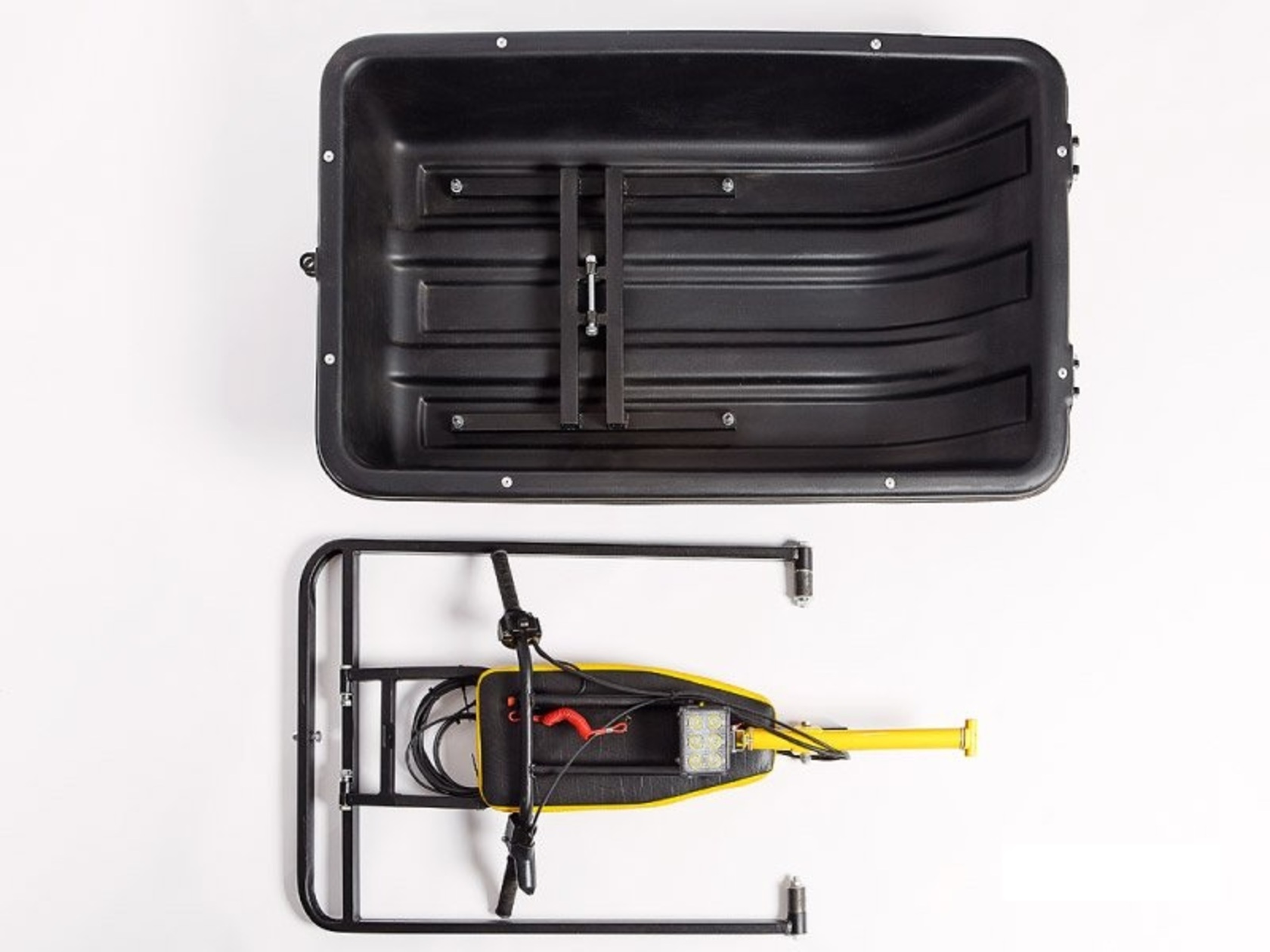 Толкач SNOW DOG вобрал в себя самые передовые разработки в области снегоходостроения. Упрощенность конструкции позволяет максимально просто разбирать и собирать Толкач. Габариты конструкции практически вписываются в размеры мотобуксировщика SNOW DOG, что обеспечивает экономию места для перевозки. Толкач SNOW DOG включает в себя светодиодную(LED) фару головного света и удобную сидушку..