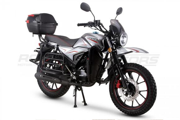 ROCKOT QUEST 150 - новый, дорожный мотоцикл от компании ROCKOT-MOTORS, с большим потенциалом на длительные поездки, независимо от типа дорожного покрытия. Благодаря своим компактным размерам, короткой колесной базе, мотоцикл отлично чувствует себя в городской среде с большим объемом дорожного трафика. Максимальная скорость ROCKOT QUEST 150 - до 92 км/ч на стандартных приводных звездах. Масса мотоцикла -126 килограмм, но при небольшой высоте по седлу в 820 мм и низкому центру тяжести, он ощущается достаточно легким.Мотоцикл имеет ЭПТС, оснащен цветной электронной панелью приборов, зеркалами, всей необходимой светотехникой, что позволяет законно передвигаться по дорогам общего пользования. ДизайнМотоцикл построен в классическом исполнении, но имеет множество современных, технологичных решений.Все световые приборы - светодиодные и очень яркие. Передняя фара имеет круглую классическую форму, но стоит ее включить, как мотоцикл обретает совершенно другой вид.Цветовая гамма модели имеет три варианта окраски: бело-красный, черный и серый.Конечно же, бросается в глаза оснащение мотоцикла туристической багажной системой. На заднем багажнике установлен жесткий центральный кофр. Откидные боковые багажники, позволяют перевозить объемный груз, а также устанавливать боковые багажные сумки. Глядя на мотоцикл, складывается впечатление, что все его пространство использовано максимально практично. Даже в дугах безопасности встроены дополнительные багажные карманы.Топливная системаВ основе топливной системы ROCKOT QUEST 150 - большой топливный бак объемом 12 литров. В зависимости от условий эксплуатации и стиля езды, расход топлива варьируется в районе 3-3,5 литров на 100 километров. Это позволяет преодолевать большие расстояния на одном баке бензина. Используемый тип топлива - бензин АИ-92. Образует топливную смесь - карбюратор PZ27 с ускорительным насосом. Ускорительный насос исключает момент “провала” при резком открытии дроссельной заслонки.Тормозная системаПо канонам классического мотоциклостроения, ROCKOT QUEST 150 имеет комбинированную тормозную систему. Спереди установлен дисковый гидравлический тормоз, с двухпоршневым суппортом, яркого красного цвета. Задний тормоз - механический, барабанный.Кому подойдет ROCKOT QUEST 150Мотоцикл будет очень полезен новичкам. Его небольшие габаритные размеры, низкий центр тяжести, малая высота по седлу - позволяют быстро освоить технику управления мотоциклом как в условиях города, так и бездорожья. С практичной точки зрения, мотоцикл понравится любителям выезжать на отдых за город. Отличная туристическая подготовка, позволит перевозить все, что Вам может потребоваться во время отдыха.Благодаря заложенной надежности в конструкцию двигателя и мотоцикла - ROCKOT QUEST 150 оценит старшее поколение, для кого требуется простая и надежная техника.
