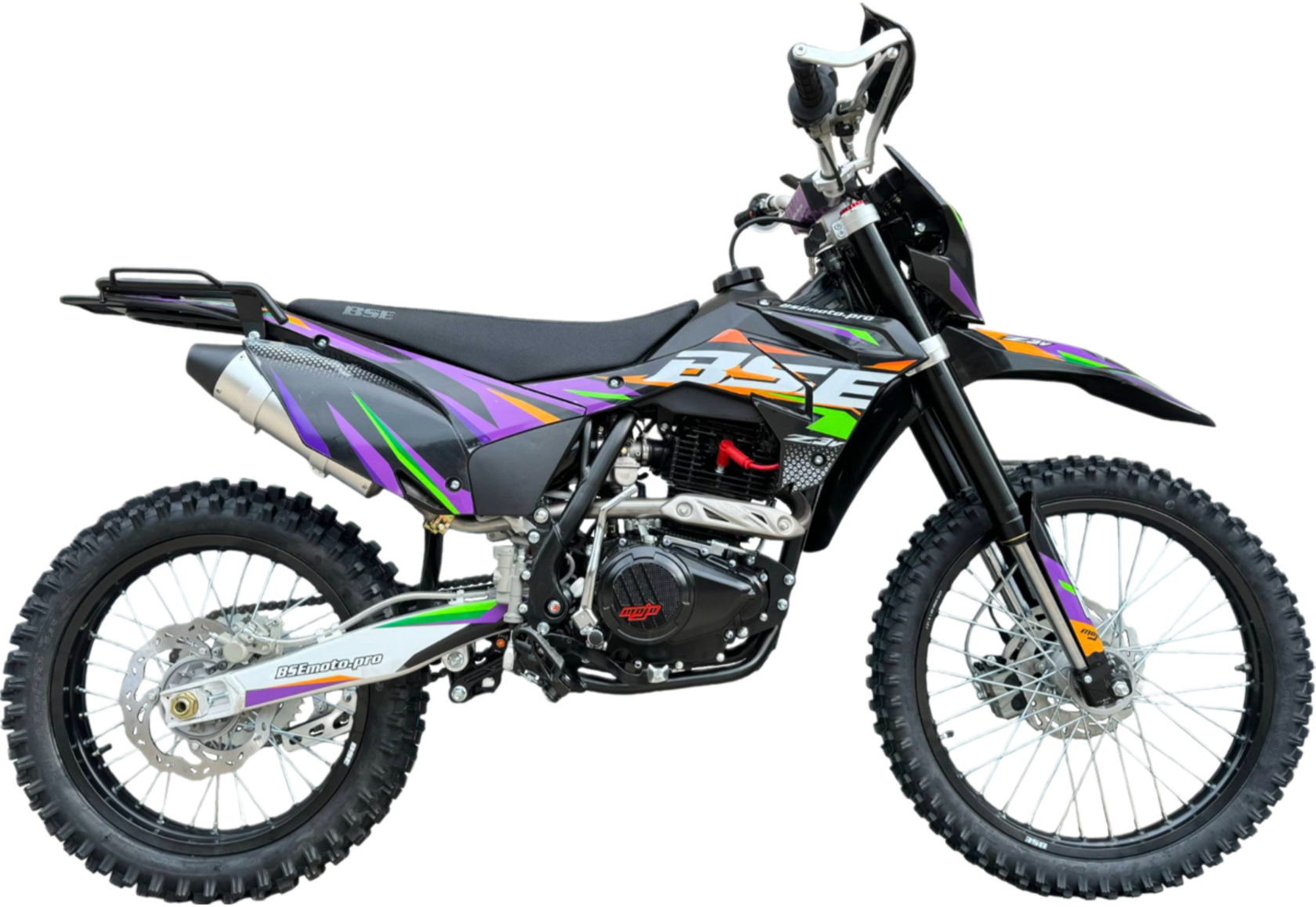 BSE RUSSIA представляет новинку 2024 - модель Z3 V!Бестселлер среднеразмерного сегмента BSE Z3 V обзавелся вариацией двигателя Zonsen ZS172FMM-5 с балансирным валом! Теперь минимум вибраций!Двигатель Z3 V: тяговитый 4-х тактный Zonsen ZS172FMM-5 (PR250) c балансирным валом. Рабочий объём: 250cc, 2-клапанная ГБЦ, воздушное охлаждение, мощность 21 лс. Легко контролируемая подача мощности благодаря карбюратору Nibbi Racing PE30 и отличный отклик дроссельной заслонки на короткоходную ручку газа. Коробка передач – механическая 5-ступенчатая, запуск – электростартером и кикстартером. Мотор очень эластичный, с отличными показателями крутящего момента на низких и средних диапазонах. А легендарная надежность завода моторов ZONSEN, удобство в обслуживании и доступность запчастей в представлении не нуждается!Среднеразмерный эндуро Z3 V готов на любые приключения! Мотоцикл оснащается стальная рамой повышенной жёсткости BOSUER с усилителями и алюминиевым мятником. Подвеска – регулируемая Mojo Standard с большими ходами помогает отрабатывать даже самые жесткие приземления, с лёгкостью "глотая" все неровности. Установлена прогрессия задней подвески. Мощная гидравлическая тормозная система HSK RACING остановит ваш мотоцикл максимально эффективно.Комфорт. Его на BSE Z3 V в избытке: полностью светодиодная фара головного света с 5 модулями и полоской дневного хода, задний стоп сигнал, USB зарядка, электростартер, удобное сиденье, широкий спортивный алюминиевый руль. Благодаря ЖК приборной панели и датчику моточасов вы всегда будете знать о всех главных параметрах мотоцикла. Металлическая зашита рук, задний багажник, буксаторы на усиленных ободах. Z3 V 21/18 в стандарте обут в «зубастые» покрышки Yanxing, спереди: 80/100- 21, сзади: 110/90 -18. Z3 V точно не спасует в условиях серьезного бездорожья.Компактный, легкий, с минимальным и вибрациями и фантастической управляемостью -отличный выбор для райдеров начального и среднего уровня. Чрезвычайно удачный, сбалансированный и комфортный мотоцикл. Современный яркий дизайн пластика. Z3 V доступен в нескольких цветовых решениях и в двух вариантах размерности колес: 21/18 или 19/16. Особое внимание на расцветку Red Twist – это первый BSE с желтой рамой!