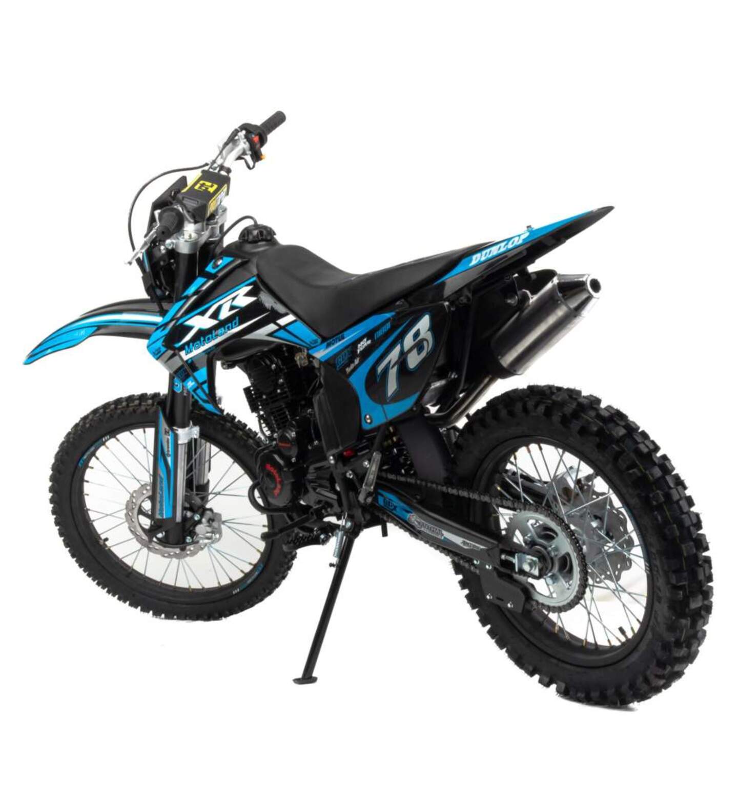 Motoland XR 300 Lite (175FMM) – бюджетный короткобазный кроссовый мотоцикл с уменьшенной высотой по седлу и мощным двигателем 175FMM на воздушном охлаждении 300 cc мощностью 25 лс.Ключевыми особенностями мотоцикла являются его компактные габариты, стальная рама, современная подвеска с предустановленными настройками с завода, мощные тормоза, стальные колесные диски, наличие электростартера и кик стартера, прямоточный выхлоп, обвес из АБС пластика, LED оптика с возможностью переключения ближний \дальний, заниженное комфортное сидение.- Двигатель ZS 175FMM – 300 кубовый «тяговитый» двигатель с высокими показателями крутящего момента и мощностью 25 лс, на воздушном охлаждении.-карбюратор PZ 30 обеспечивает бесперебойную работу двигателя в любом диапазоне температуры и высоты.- Стальная рама обеспечивает солидный запас прочности, ресурс и ремонтопригодность- Энергоемкая подвеска с заводскими настройками гарантирует уверенное преодоление неровностей дороги без «клевания носом» при торможении