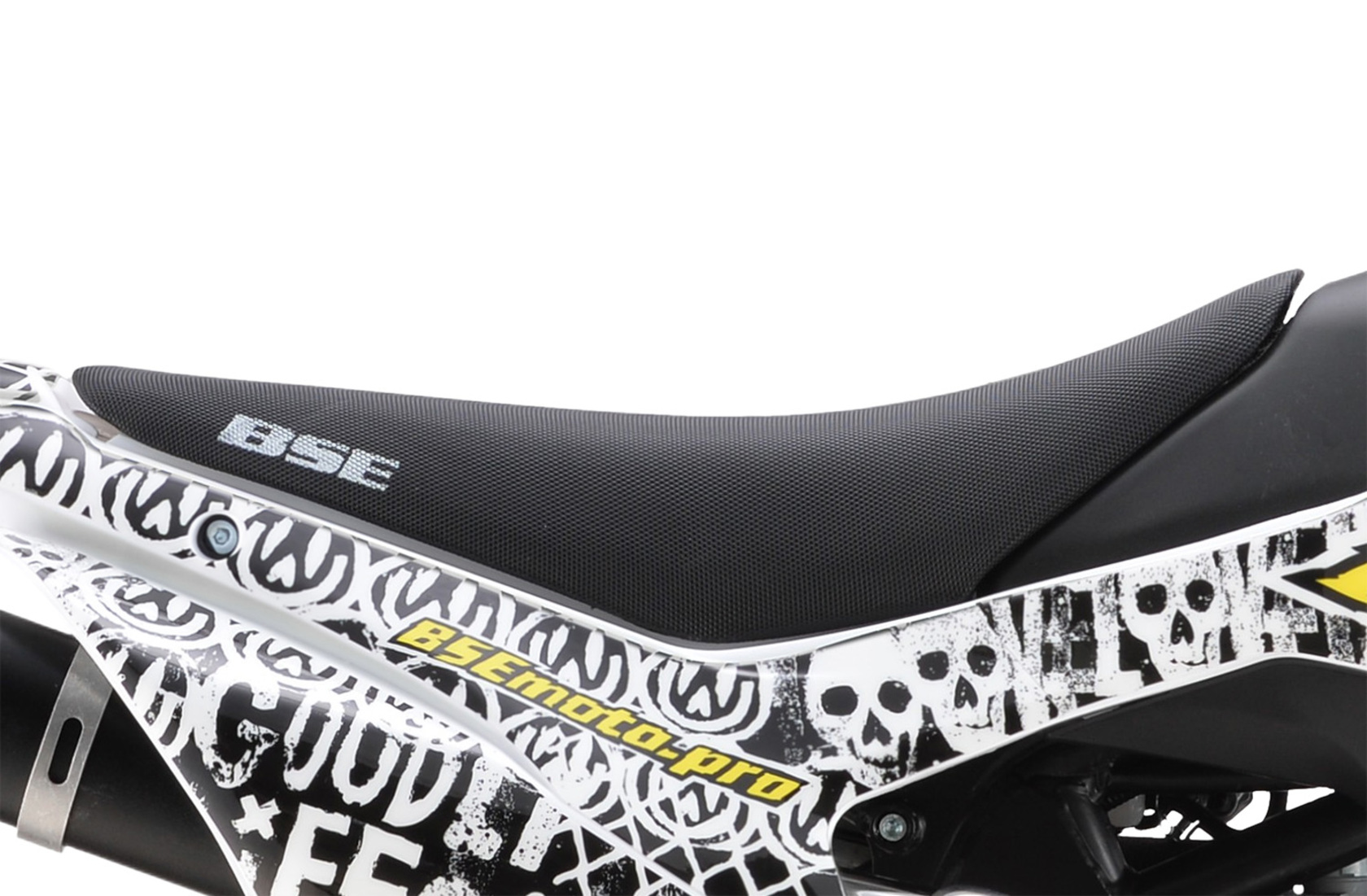 Питбайк BSE EX 125E MAX13 1.0 14/12 предназначен для активной и увлекательной езды на мотокроссах и отличается от аналогов в своем классе не только качеством, но и эксклюзивным дизайном от современного граффити-художника Max13 (Макс Торопов). Базой для этой модели стали шасси DX125, доказавшие надежность конструкции. На хроммолибденовой раме установлен 125-кубовый мотор Zonghshen, который производит максимально 10 л.с. Комбинируется он с простым в обслуживании и настройке карбюратором MIKUNI VM22, воздушным охлаждением и двумя типами запуска: кик- и электростартер.Мотоцикл получил также дисковые тормоза Mojo Racing с гидравлическим приводом и энергоемкую подвеску с вилкой-телескопом перевернутого типа. Дополненная усиленными колесными дисками и траверсами CNC комплектация наилучшим образом преодолевает неровности дороги. Для поездок в темное время суток востребованной станет мощная светодиодная фара.
