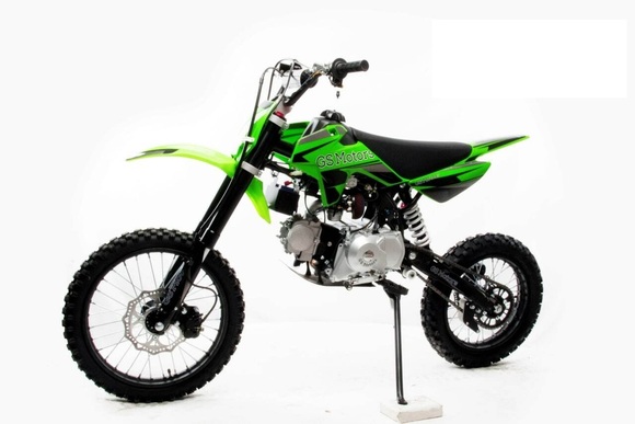 Питбайк GS Motors S12 17/14 идеален для поездок по грунтовым дорогам и бездорожью. Хорошо чувствует себя на мягком и среднем грунте. Питбайк прост в управлении и не требует специального ухода, подойдёт как новичкам, так и любителям мотокросса.Конструкция подчёркивает неуступчивый спортивный характер, который не остановится ни перед одним препятствием. Пластик комбинированный, прочный, не ломается при сгибании.Передняя подвеска — телескопическая нерегулируемая вилка перевёрнутого типа, которая отлично подходит для преодоления ям, ухабов и других неровностей плохих дорог или их отсутствия. Задняя подвеска маятниковая с моноамортизатором. Руль 22 мм с высоким подъёмом и перекладиной удобен для мотоциклистов разного роста.Питбайк весит всего 75 кг, выдерживает вес до 90 кг. Оснащён CNC траверсами, рама полудуплексная стальная, мотоцепь качественная. Колёса спицованные, металлические. Размер заднего колеса — 14 дюймов, переднего — 17 дюйм. Тормоза дисковые, передний тормозной суппорт двухпоршневой, задний — однопоршневой.Питбайк оснащён карбюратором JINGKI и одноцилиндровым четырёхтактным двигателем с воздушным охлаждением. Надёжный мотор 1P54FMI мощностью 8 л. с. и объемом 125 см³ разгоняет питбайк до 90 км/ч. Коробка передач механическая, четырёхступенчатая. Система зажигания электронная (CDI). Запуска двигателя - кикстартер.Покрышки с шипами и высоким грунтозацепом идеальны для бездорожья. Мощность мотора и небольшой вес питбайка позволяют ему преодолевать значительные препятствия и непролазную грязь, хорошо заходить в подъёмы.Питбайк относится к недорогим моделям, которые при должной эксплуатации работают без сбоев. Неприхотлив в обслуживании, не занимает много места в гараже. При необходимости в нём легко сменить любую повреждённую деталь.