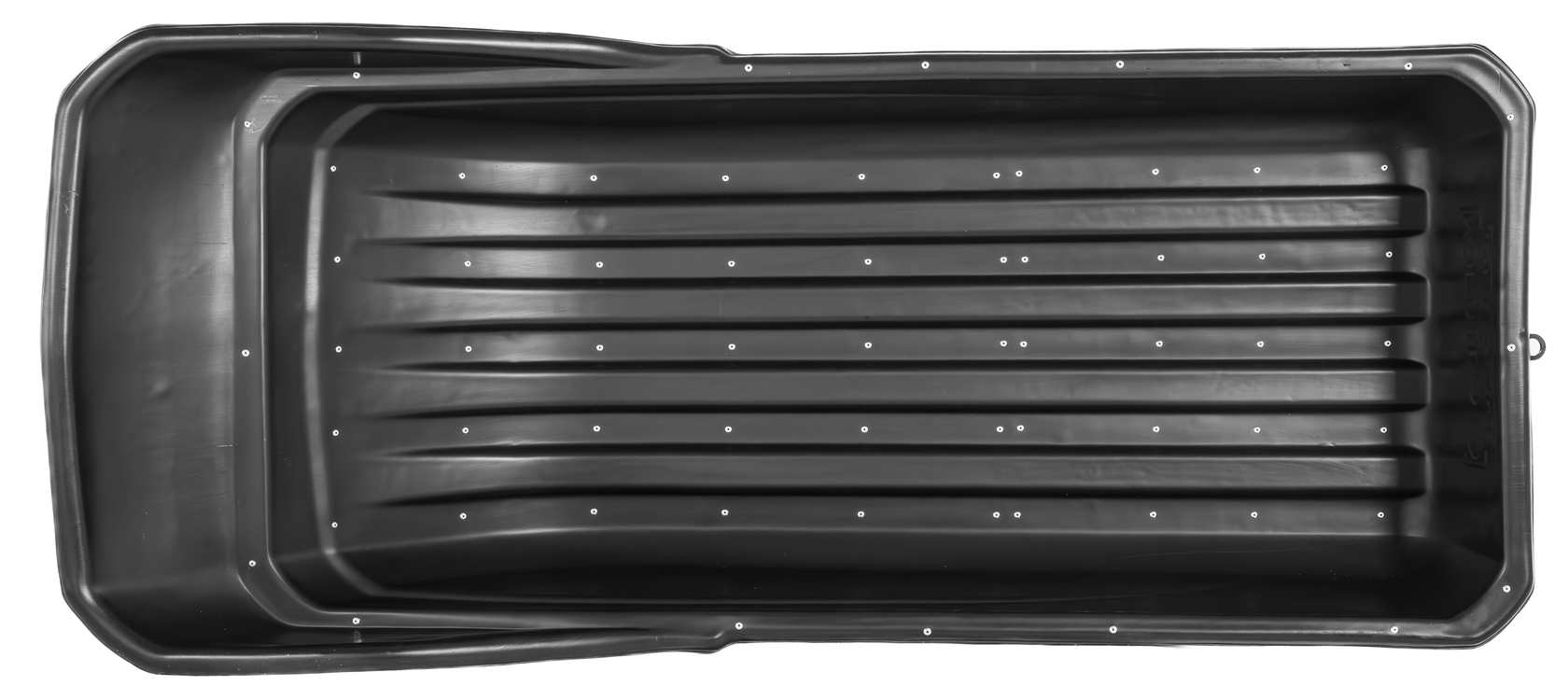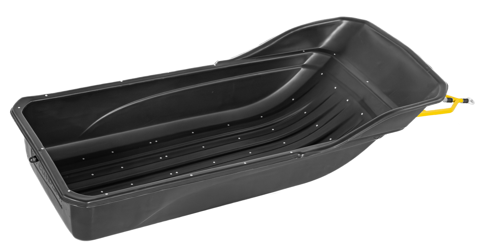 Преимущества конструкции. Узкое дно шириной 550 мм обеспечивает отличную проходимость по глубокому снегу Сбалансированная геометрия корпуса гарантирует устойчивость на сложном рельефе Увеличенная высота бортов 490 мм позволяет перевозить высокие грузы