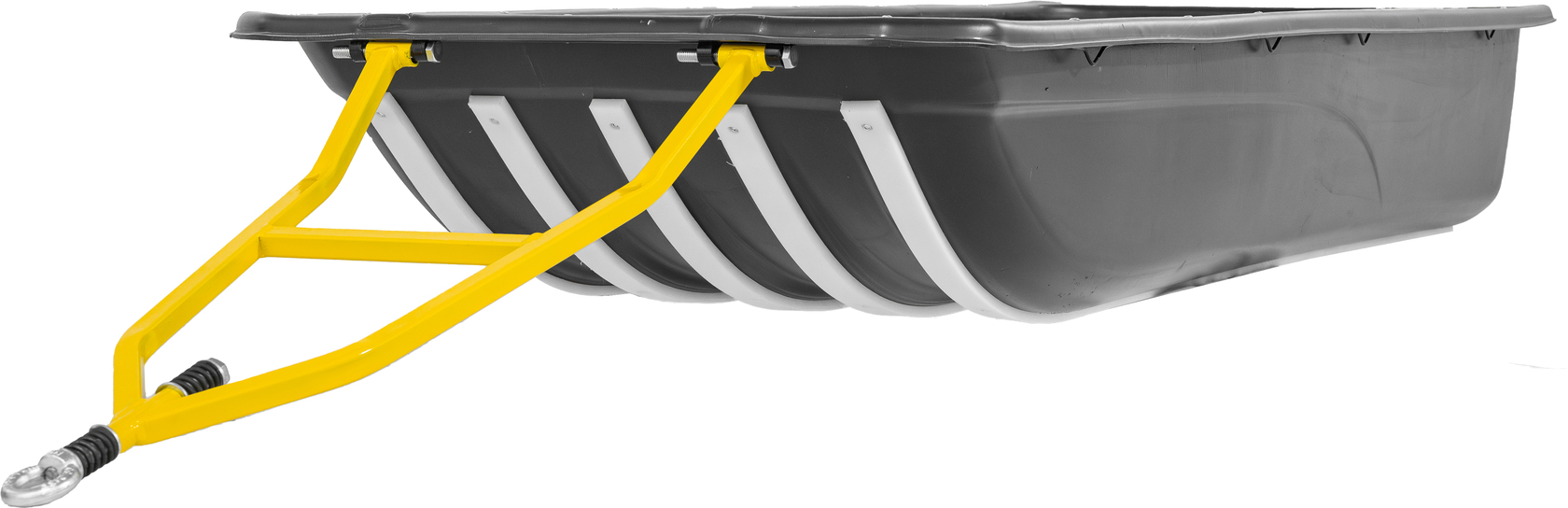 Крупногабаритные сани-прицеп для профессионального использования с снегоходами и мотобуксировщиками. Увеличенные габариты 2500×860×490 мм обеспечивают максимальную вместимость для перевозки особо объемных грузов. Изготовлены из сверхпрочного ПНД с УФ-стабилизацией. Полная комплектация сцепным устройством и стропами обвязки.