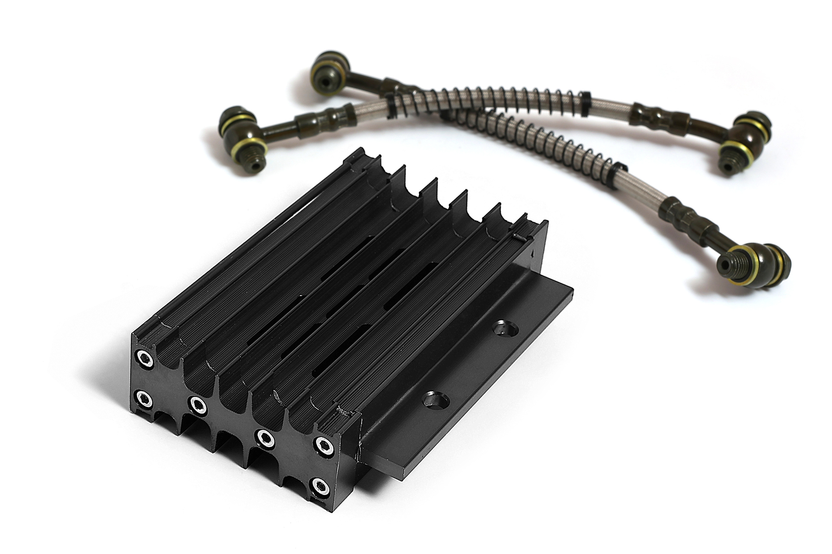 Высококачественный комплект радиатора масляного охлаждения с корпусом из прочного CNC-обработанного алюминия в стильном чёрном анодированном цвете. Разработан для установки на 90% питбайков и мопедов с объёмом двигателя от 125 до 190 см³. Обеспечивает эффективное охлаждение масла, защищая двигатель от перегрева и увеличивая его ресурс, особенно при повышенных нагрузках.