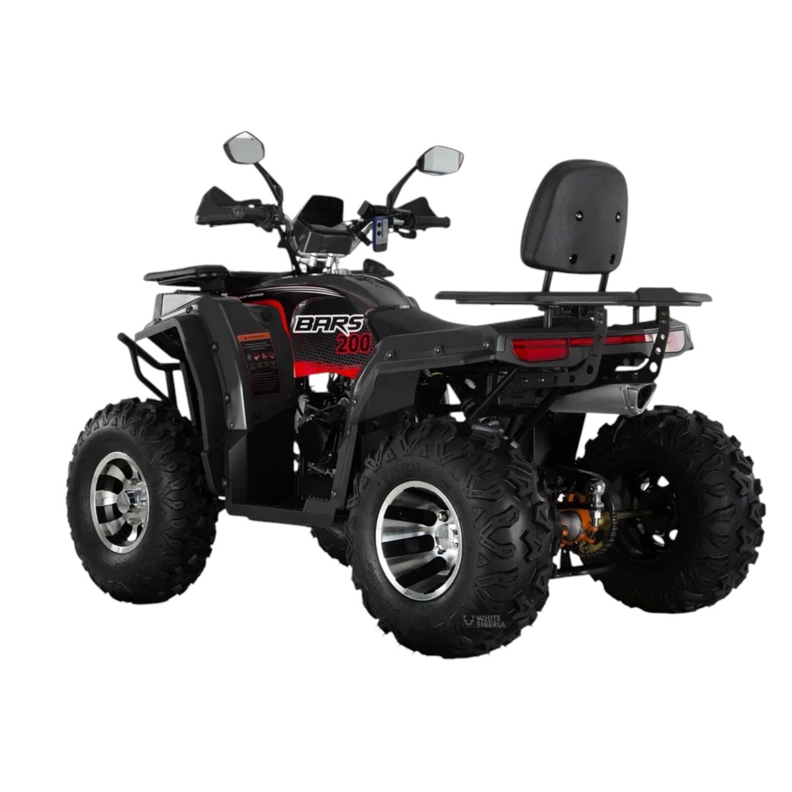 WHITE SIBERIA BARS 200CC PROНовый Бензиновый квадроцикл WHITE SIBERIA BARS 200CC PRO — выход на совершенно новый уровень качественной бензиновой техники.Бензиновый квадроцикл WHITE SIBERIA BARS 200CC PRO для подростков и взрослых.Оборудован четырехтактным двигателем с балансировочным валом, 200 кубов 17 л.с.Развивает скорость до 60 км/ч.Трансмиссия вариатор F-N-R.Новый Бензиновый квадроцикл WHITE SIBERIA BARS 200CC PRO- имеет богатое оснащение, в комплектацию PRO включены литые диски, лебедка, фаркоп, дополнительное освещение, подогрев ручек, защита рук, USB разъем, спинка для пассажиров, поворотники и зеркала заднего вида, спидометр, датчик уровня топлива.Бензиновый квадроцикл WHITE SIBERIA BARS 200CC PRO-это полноценный квадроцикл от WHITE SIBERIA со всеми необходимыми функциями для активного отдыха на природе в любое время года и при любой погоде.