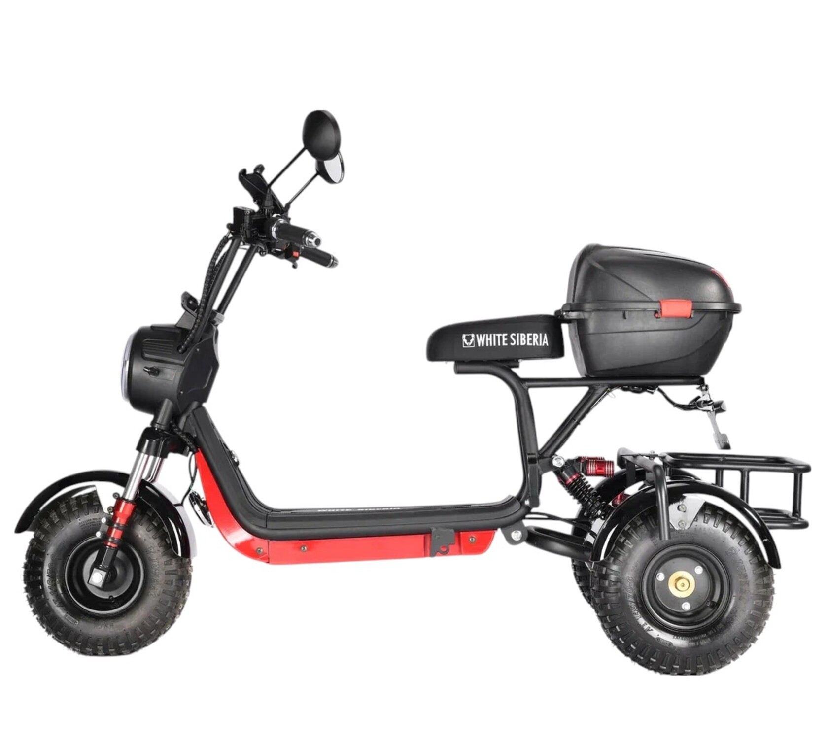 Электротрицикл WHITE SIBERIA TRIKE MINI RED 1500W - "мини" трицикл. Безопасный и надежный, он станет незаменимым помощником для людей, постоянно или сезонно проживающих за городом, а за счёт своей компактности и в городской среде.Такой транспорт будет полезен для перемещения по территории коттеджного поселка или на даче, поездок к ближайшему магазину, прогулок. Он понравится всем, но особенно полезен будет пожилым людям или с ограниченными возможностями. У трицикла удобная низкая посадка, он прост в управлении и неприхотлив в эксплуатации.Преимущества:Не нужно регистрировать в ГИБДД, а для управления достаточно водительское удостоверение любой категории;