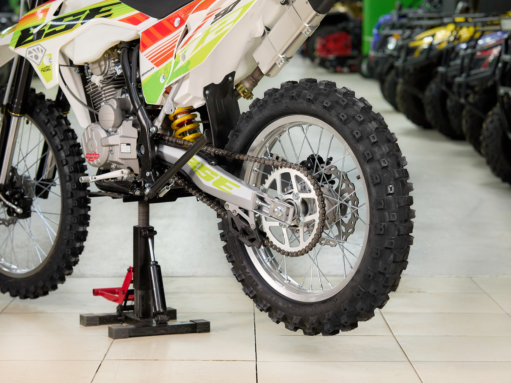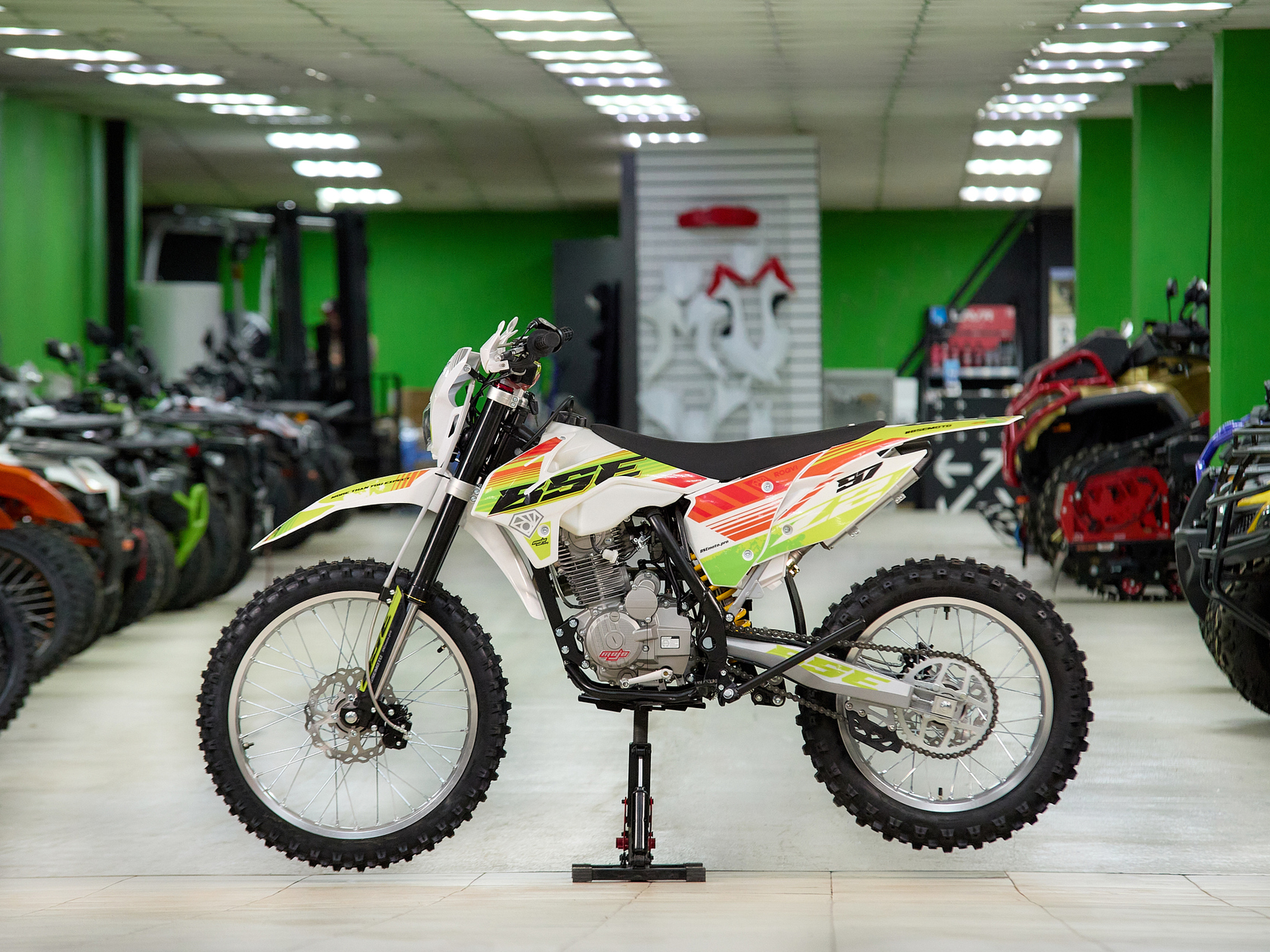 Кроссовый мотоцикл BSE Z2 оснащен надежным и экономичным 4-х тактным Zongshen ZS 166 FMM, контролируемая подача мощности благодаря карбюратору Nibbi, отличный отклик дроссельной заслонки на короткоходную ручку газа. Всепоглощающая подвеска, прогрессия задней подвески, прочная стальная рама BSE, вилка перевернутого типа, мощная гидравлическая тормозная система, буксаторы на всех колёсах, внедорожная резина – BSE Z2 не спасует в условиях бездорожья.Комфорт. Этого на BSE Z2 в избытке: LED фара, электростартер, удобное сиденье, широкий удобный алюминиевый руль, защита рук, прозрачный бак.Мотоцикл доступен в 3 цветовых исполнениях: Roqvi Yellow, Roqvi Green и Roqvi Pink.