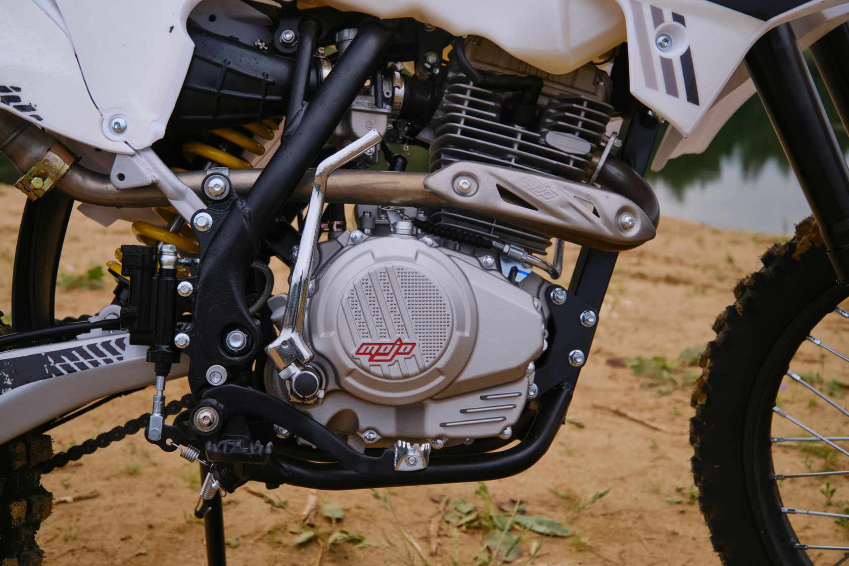 Вес: 107 кг – маневренность и легкость управления. Тормоза: Дисковая гидравлическая система MOJO – эффективное торможение в любых условиях. Рама: Из высокопрочной стали – прочность и долговечность. Цепь: 520-я серия – устойчивая к нагрузкам. Бак: 6,3 литра – оптимальный запас хода. Идеальный выбор для: - Любителей эндуро и легкого кросса.