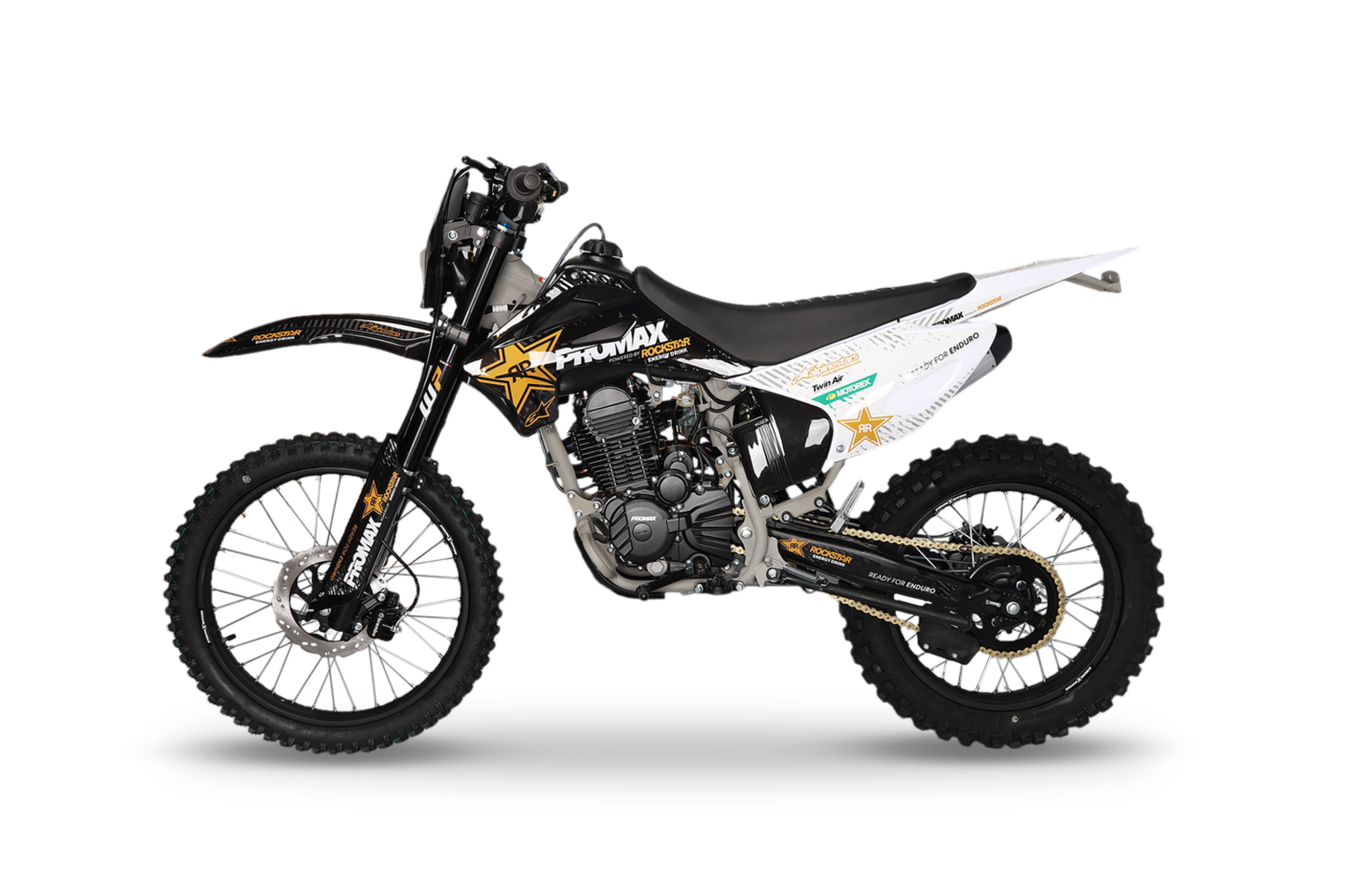 Тайваньский бренд, покоривший европейские страны, неустанно завоевывает рынок России, доказывая, что качество не означает высокий ценник! Для подтверждения своих слов – бренд дает гарантию 3 года на свою технику.Все мотоциклы PROMAX имеют Европейский сертификат качества. Применяются влагозащищенные разъемы проводки. Все подшипники обработаны специальной консистентной смазкой. «Quality in detail» (“Качество в мелочах”) - слоган компании PROMAX.ДвигательНовая модель PROMAX MX280 2024 модельного года для тех кто хочет больше! Больше скорости! Больше мощи! Больше адреналина! Встречайте PROMAX MX280 – покорителя бездорожья ! PROMAX MX280 - это выбор как продвинутых новичков, так и опытных райдеров. Мощный и надежный двигатель ZS 172FMM-3A (CB250-F) с воздушным охлаждением и 5-ступенчатой трансмиссией в паре со спортивным карбюратором Nibbi PZ30 и выхлопом Akrapovic Exhaust System гарантируют приятный выхлоп, стабильную работу и мощность 24 л.с. Рычаг сцепления имеет флажок для легкого выжима сцепления и правильного положения троса для максимального комфорта и полного контроля работы двигателя.Рама изготовлена с упором на надежность и долгий срок службы. Все узлы тщательно проварены, есть дополнительные усиления. На раму установлен пластиковый каркас, который защищает мотоботы и раму. Алюминиевый маятник KTM для сбалансированного веса и большей прочности.Спортивные колеса 21/18Алюминиевые обода от бренда Unison, сделанные из сплава 6065, соединены с фрезерованной ступицей 4мм спицами! Покрышки Kenda, благодаря мягкому составу, отлично держат сцепление с покрытием летом, а зимой выдерживают вкручивание шипов!Тормоза ANJIE.Двухпоршневой суппорт спереди и однопоршневой сзади от производителя тормозных систем ANJIE, в сочетании с колодками, изготовленными из керамического материала, обеспечивают высокий коэффициент трения и эффективность торможения даже при высоких температурах дисков. Сами же диски толщиной 4мм – гарантия безопасности и плавной остановки.Сиденье PROMAXФирменное нескользящее сиденье PROMAX, выполненное по технологии anti-slip grip, держит любого райдера как суперклей: специальное ребристое водонепроницаемое покрытие позволяет чувствовать себя комфортно в любых погодных условиях.Электронная приборная панельМногофункциональная приборная панель со спидометром, тахометром, одометром, индикатором передач и заряда батареи. Влагозащитные разъемы подключения приборной панели, блоков управления и кнопок старт/стоп.Полностью диодная оптикаКороткоходная ручка газаРучка газа с коротким ходом от Nibbi Racing – пожалуй лучшее решение на подъемах и труднопроходимых участках. Нет нужды перехватывать ручку для получения большей мощности, достаточно подобрать необходимое усилие кисти и получить результат, оптимальный для стиля езды райдера!Приводная цепь ChohoЦепь Choho отличается от других большим запасом прочности, благодаря уплотнительному кольцу удерживающему смазку внутри и не пускающему пыль снаружи, предотвращая растяжение и низким уровнем шума – идеальное сочетание для тех, кто хочет как можно реже обслуживать технику и как можно больше эмоций получить!ПодвескаПодвеска WP, с диаметром пера в 41 мм, в заводской форме обладает широчайшими возможностями настройки, которых не представит ни один конкурент! При помощи внешних регуляторов и легко настраиваются прямо на трассе. Диапазон их нас