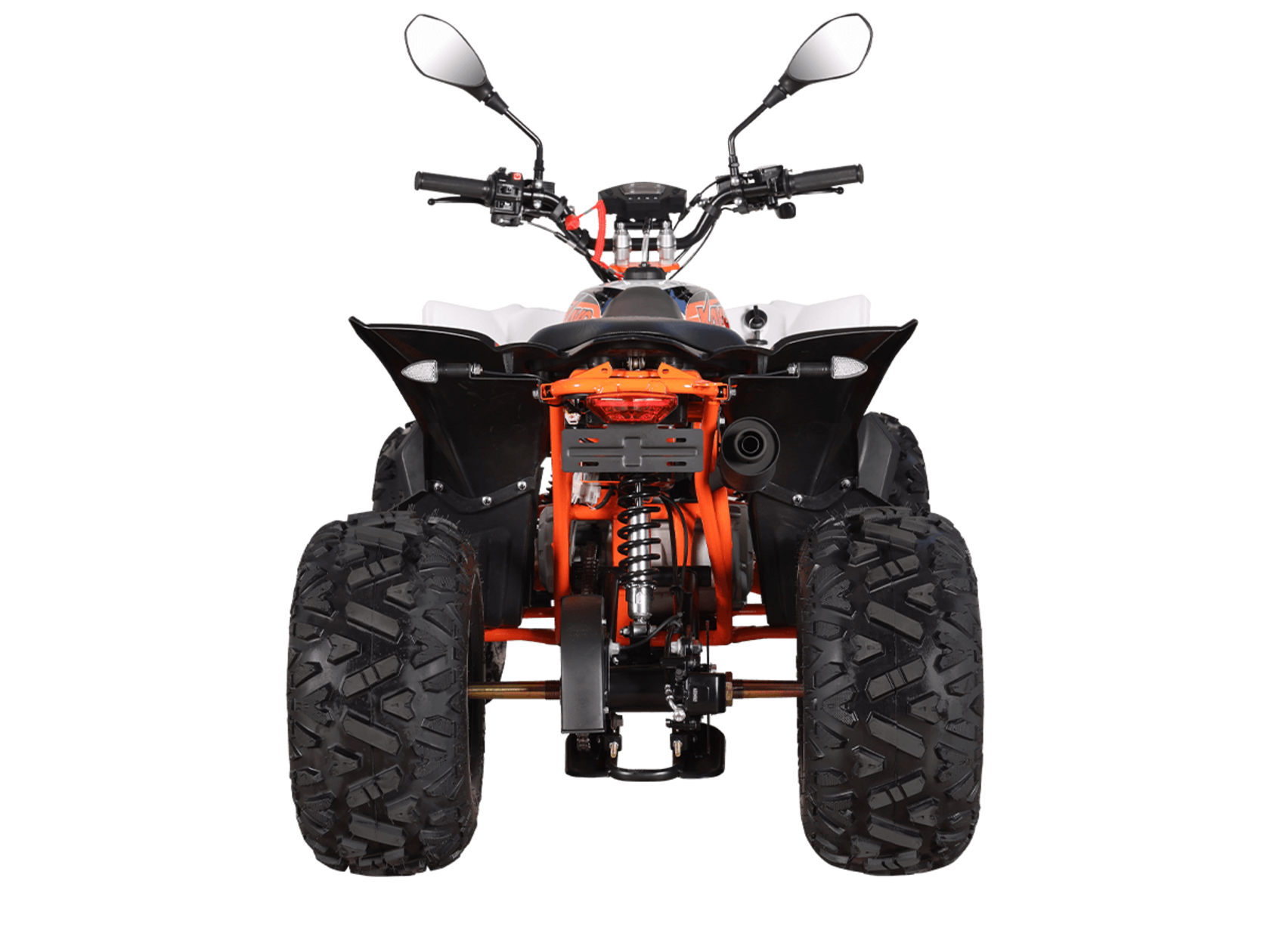 Квадрицикл KAYO AT110 – выносливая модель для освоения спортивной езды по бездорожью или помощи в хозяйстве. Хорошо подходит для детей и подростков, интересующихся поездками за пределами проторенных троп.Одноцилиндровый 4-тактный двигатель YX1P53FMH-2 с верхним распредвалом и воздушным охлаждением имеет объём 107 см3. Максимальная мощность 7,2 л.с. За подачу топлива отвечает карбюратор. Привод осуществляется на 2 колеса. Трансмиссия имеет автоматическую коробку передач со схемой F-N-R.Запуск осуществляется с помощью системы электронного зажигания. Имеется функция родительского дистанционного выключения двигателя.На квадрицикле используются колёса диаметром 8 дюймов. Амортизаторы подвески имеют длину 265 мм, задние можно регулировать. За торможение отвечает гидравлическая дисковая система. Клиренс составляет 110 мм, колёсная база 920 мм.Габариты модели 1360х840х880 мм, высота по седлу 660 мм, вес 98 кг. Ёмкость бака 4 литра.Наличие ПТС позволяет зарегистрировать технику на дорогах общего пользования.