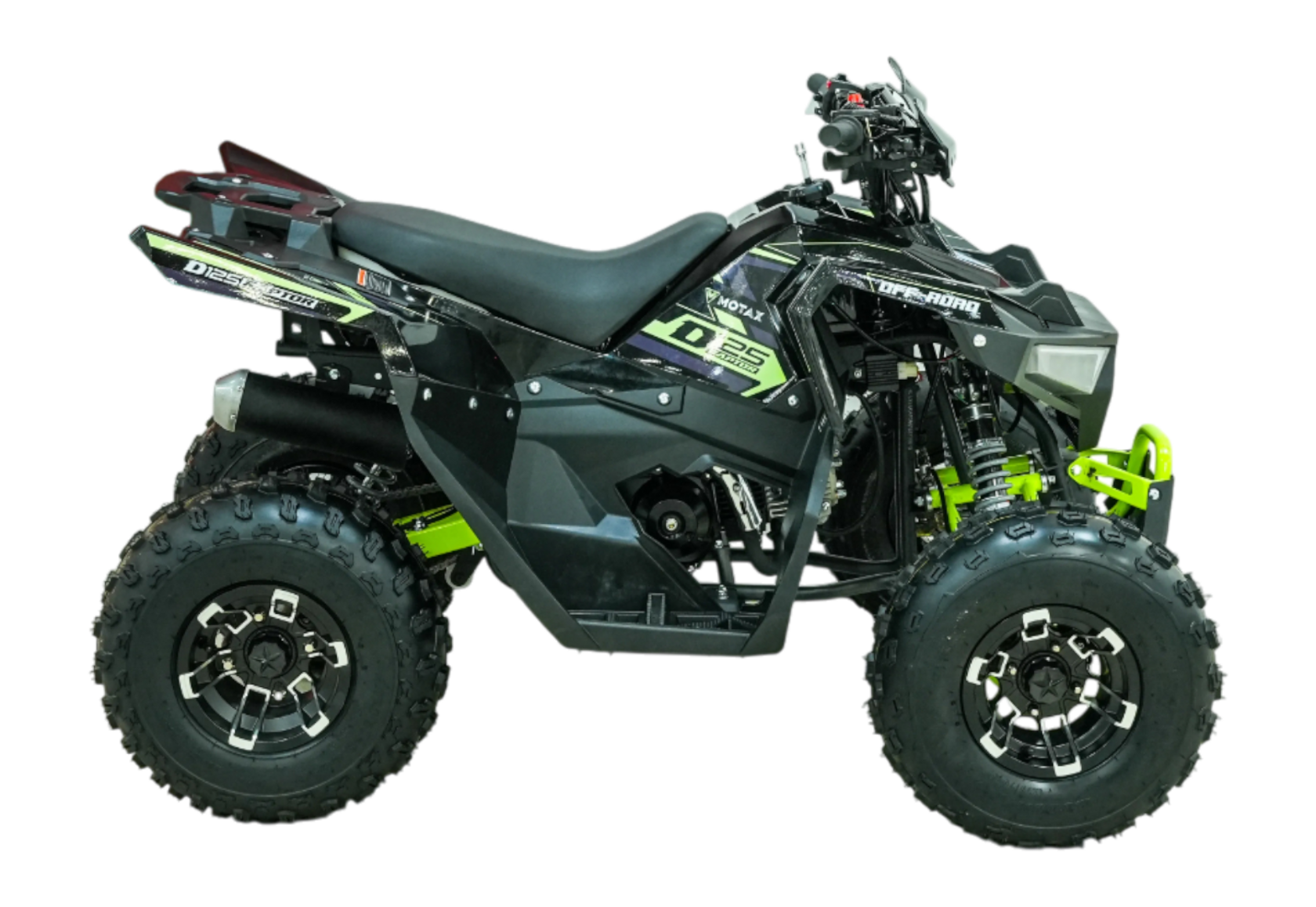 Квадроцикл бензиновый MOTAX GRIZLIK D125 RAPTOR LUX для детей и подростков. Квадроцикл оборудован 125 кубовым, мощностью 10 л.с., четырехтактным двигателем. Развивает скорость до 55 км/ч, выдерживает нагрузку до 100 кг.