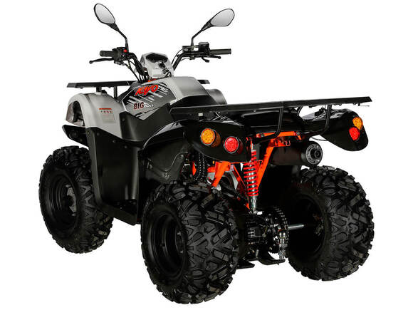KAYO AU200 - популярная и доступная модель, которая пользуется вниманием широкого круга любителей внедорожных приключений и активного отдыха. Утилитарный мотовездеход обладает незаурядными возможностями практического использования и рассчитан на людей разного возраста и опыта.В крепкой раме, проверенной годами и тысячами пользователей, установлен 4-тактный мотор с вертикальным расположением цилиндра. Рабочий объем двигателя в 176 кубических сантиметров позволяет развивать максимальную мощность в 13 лошадиных сил. Данный мотор оснащается балансирным валом, что способствует снижению вибраций и положительно сказывается на комфорте передвижения.У KAYO AU200 используется автоматическая трансмиссия на базе вариатора. Рычаг селектора передач имеет три положения: задний ход – нейтраль – вперед. На крышке вариатора установлен шноркель, и его воздухозаборное отверстие расположено довольно высоко. Это дает возможность преодолевать небольшие водные препятствия, не опасаясь попадания воды в трансмиссию.Все кнопки управления оборудованием собраны в один компактный пульт. Здесь находятся кнопки запуска и остановки двигателя, переключатели светового оборудования, кнопка звукового сигнала. Для удобства запуска двигателя рычаг подсоса также вынесен на руль. Как и любой другой утилитарный квадроцикл, KAYO AU200 комплектуется задним и передним багажниками, сделанными из стальных труб и облицованных пластиком.