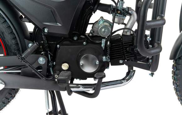 MotoLand Alpha RS 11 это продолжение легендарного и всеми любимого мопеда Alpha, внешний вид приобрел современную и эргономичную форму по пластику и обновленную приборную панель.Выпускается в трех цветах: красный, синий, черный.Мопед можно использовать для самых различных целей: для одиночного или совместного передвижения в городском потоке, сельской местности, поездки на природу, рыбалку и охоту.При этом он универсален и подходит мотолюбителям любого возраста и опыта вождения.Для подростков, подойдет как подарок и первый мотоцикл для только начинающего свое знакомство с миром мототехники.Для взрослых, которым нужна техника для поездок из точки А в точку Б и обратно, именно в таком режиме он способен показать себя с лучшей стороны.Мопед полностью отвечает требованиям к безопасному движению по городу и за городом: оснащен фарой дальнего и ближнего света, поворотниками, стоп-сигналом, звуковым сигналом, зеркалами заднего вида, габаритными светоотражателями.Для того чтобы ездить на мопеде, нет необходимости в регистрации в ГИБДД и страховке.Техническая сторонаМопед поставляется с 48 кубовым одноцилиндровым четырехтактным двигателем с воздушным охлаждением (1P39FMB). Установлен карбюратор PZ19.Двигатель работает ровно, имеет высокую мощность в широком диапазоне оборотов, что позволяет комфортно трогаться и быть уверенным, что двигатель не заглохнет в неподходящий момент.Двигатель имеет возможность легкого запуска с кнопки на руле, так как имеет электростартер, а при необходимости можно воспользоваться кикстартером.Механическая трансмиссия содержит 4 передачи.Мопед имеет хорошую динамику разгона, расход 3 л. на 100 км, объем бака 7л, которого хватит на 200+ км.