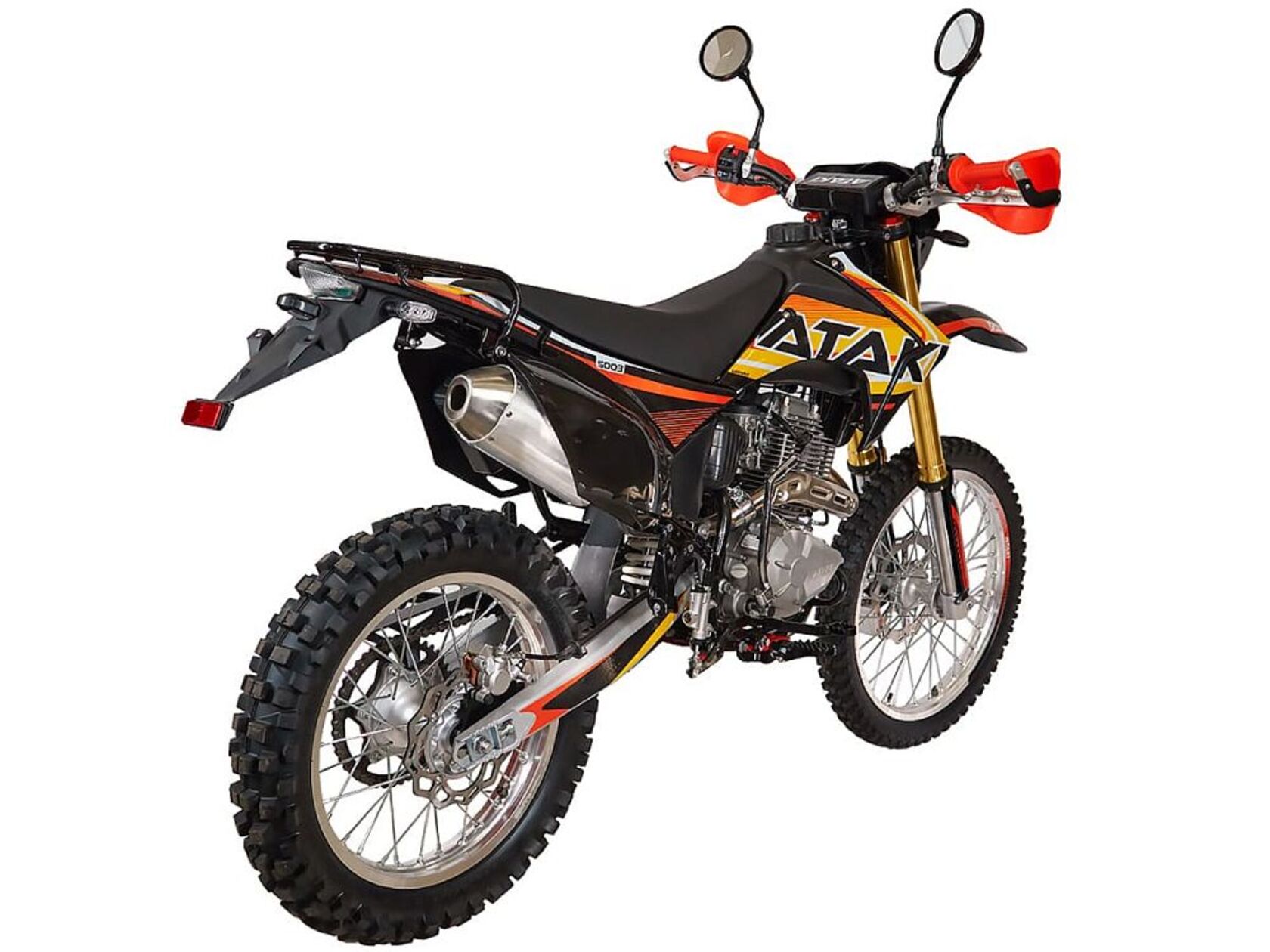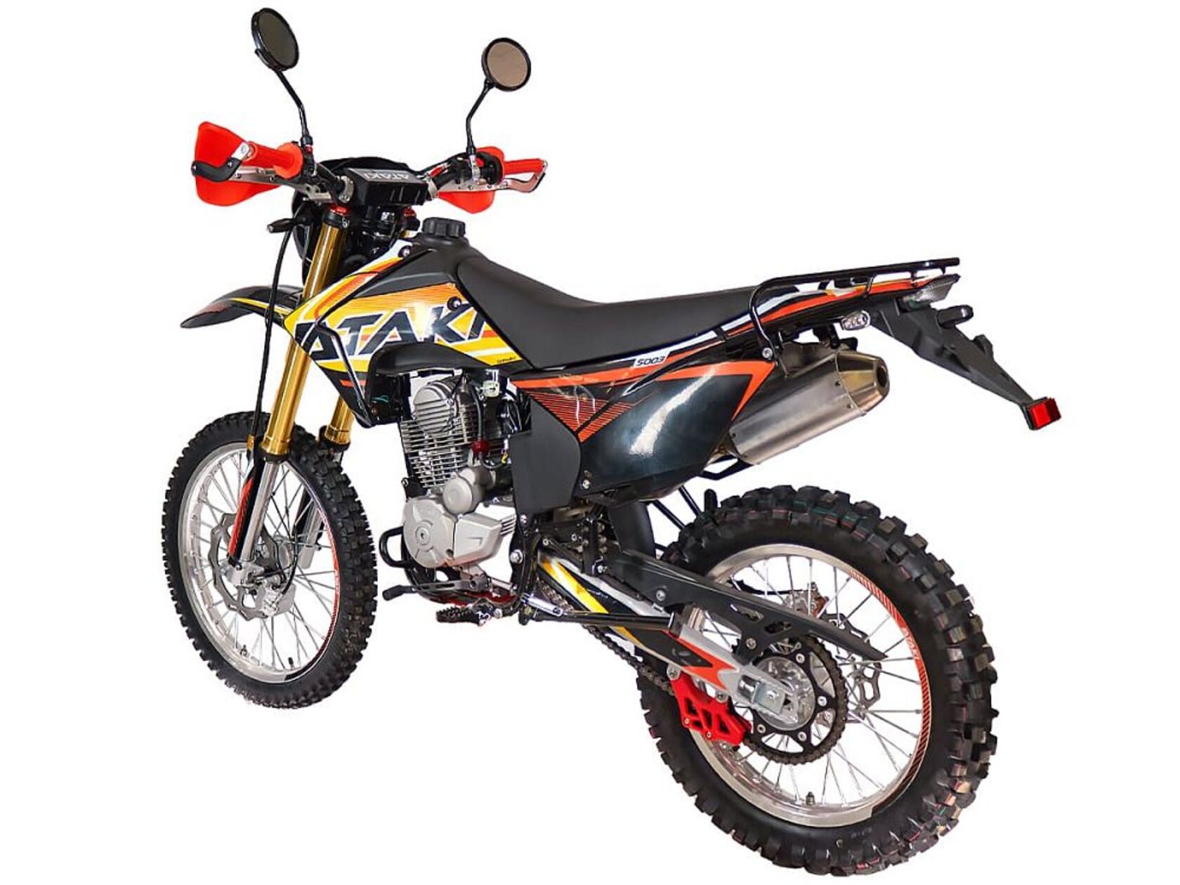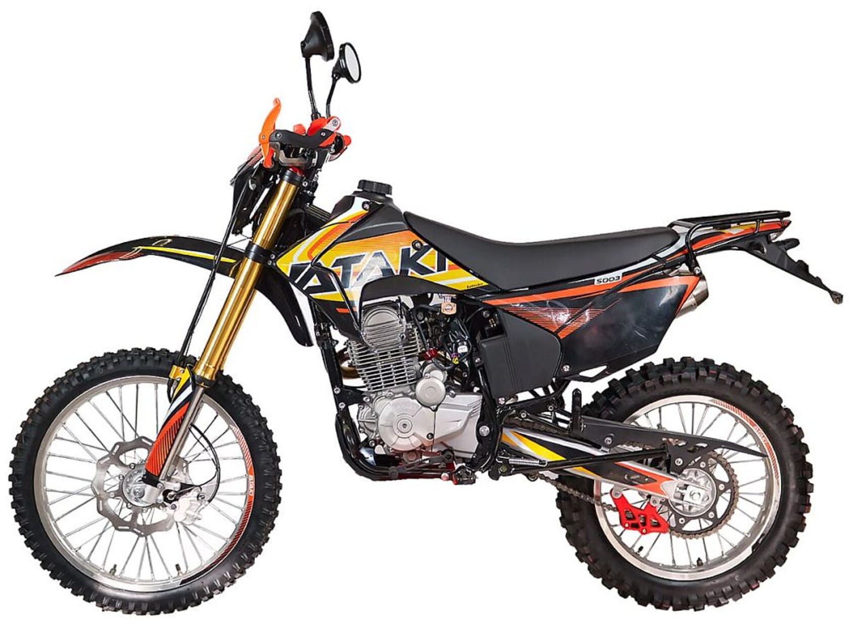 Мотоцикл ATAKI S003 300 (4T 175FMM) ПТС 21/18 — это современный и стильный мотоцикл, созданный для тех, кто ищет мощный и надёжный транспорт для городской езды и спортивных приключений. Он оснащён 300-кубовым 4-тактным двигателем ZONGSHEN PR300/ZS175FMM-5 мощностью 24 л.с., что гарантирует достаточную динамику и высокую скорость. Мотоцикл имеет лёгкую и прочную раму, которая обеспечивает надежную устойчивость и хорошую управляемость даже на высоких скоростях и по неровному рельефу. Основная система подвески состоит из передней вилки и задней амортизационной подвески, что позволяет поглощать неровности и избыточные вибрации на дороге и обеспечивать комфортную поездку.Дизайн мотоцикла отличается стильным и современным исполнением с нанесённой графикой, эргономичная конструкция улучшает аэродинамику и устойчивость на дороге. Мотоцикл также оснащён современными светодиодными фарами, обеспечивающими хорошую видимость и безопасность на дороге, а также всем необходимым для выезда на дорогу общего пользования.Модель также имеет удобное и эргономичное сиденье, которое обеспечивает комфорт при длительных поездках. Надёжный, мощный и стильный транспорт для любителей активных поездок и скоростной езды. Он идеально подходит для городской езды, спортивных мероприятий и путешествий на дальние расстояния.