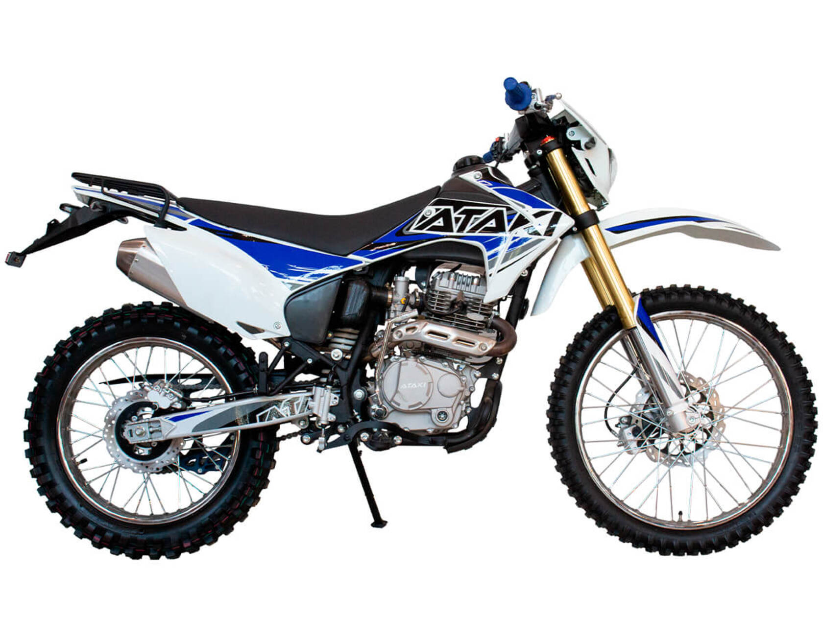 Кроссовый мотоцикл ATAKI S003 Lite 250 (4T CB250-G) – отличный снаряд для внедорожного экстрима, представляющий собой оптимальный баланс производительности и технической оснащённости, поэтому он идеально подходит как новичкам, так и опытным райдерам. Удобный, простой и надёжный мотоцикл, который полностью оправдывает свою цену.Мотоцикл оснащён одноцилиндровым 4-тактным двигателем воздушного охлаждения (ZONGSHEN ZS165FMM) объёмом 223 см3, который обеспечивает мощность в 17 л.с., что позволяет развивать большую скорость и с лёгкостью преодолевать трассы со сложным рельефом. Карбюратор NIBBI PE30 обеспечивает бесперебойную работу техники в самых жёстких условиях эксплуатации, простоту и лёгкость в обслуживании, а также неприхотливость к качеству топлива. Двигатель работает в паре с 5-ступенчатой механической коробкой передач с классической схемой “1-N-2-3-4-5”. Передняя подвеска — нерегулируемая телескопическая вилка перевёрнутого типа длиной 830 мм, задняя — нерегулируемый моноамортизатор 370 мм. Мотоцикл оснащён классическими спицованными колёсами диаметром 18 и 21 дюйм. Эффективное и безопасное замедление с любых скоростей обеспечивают гидравлические дисковые тормоза.Высококачественная износостойкая резина с развитым протектором отлично держит дорогу на различных типах покрытия и в самых разных поворотах. Благодаря удобным подножкам и сиденью эргономичной формы, покрытому антискользящим материалом, на мотоцикле комфортно ездить вдвоём. Объём топливного бака составляет 9 л, чего с успехом хватает для длительных сессий.Модель оснащена задним багажником-решёткой и эргономичными зеркалами заднего вида. Наличие яркой светодиодной фары позволяет кататься в тёмное время суток.Мотоцикл имеет ПТС и весь необходимый комплект светотехники, позволяющий ездить по дорогам общего пользования.ATAKI S003 Lite 250 (4T CB250-G) сочетает в себе отличные технические характеристики, комфорт и надёжность, что позволяет вам ощутить настоящую свободу на любой трассе.