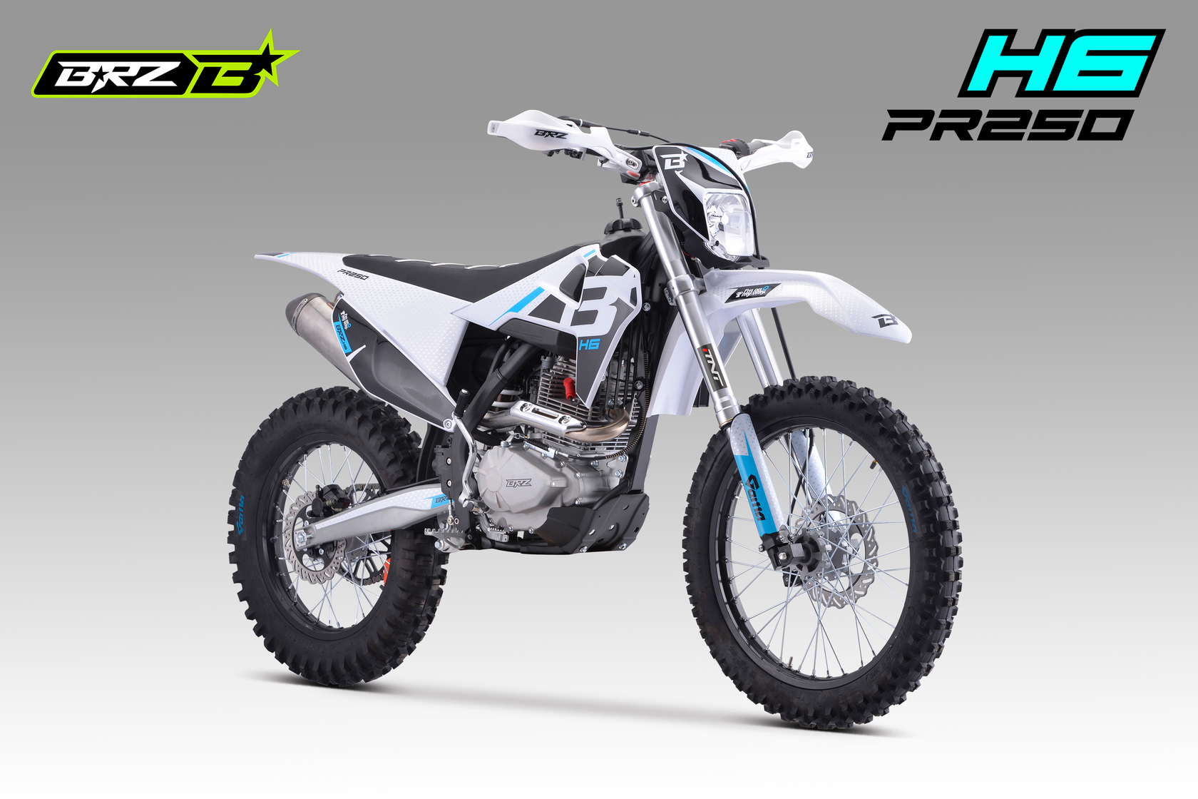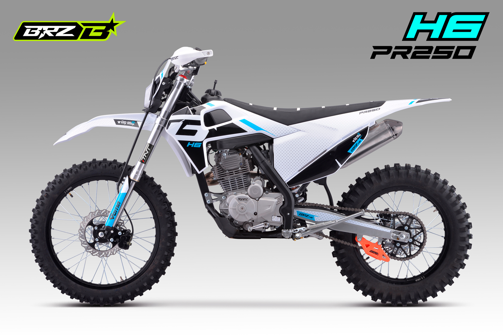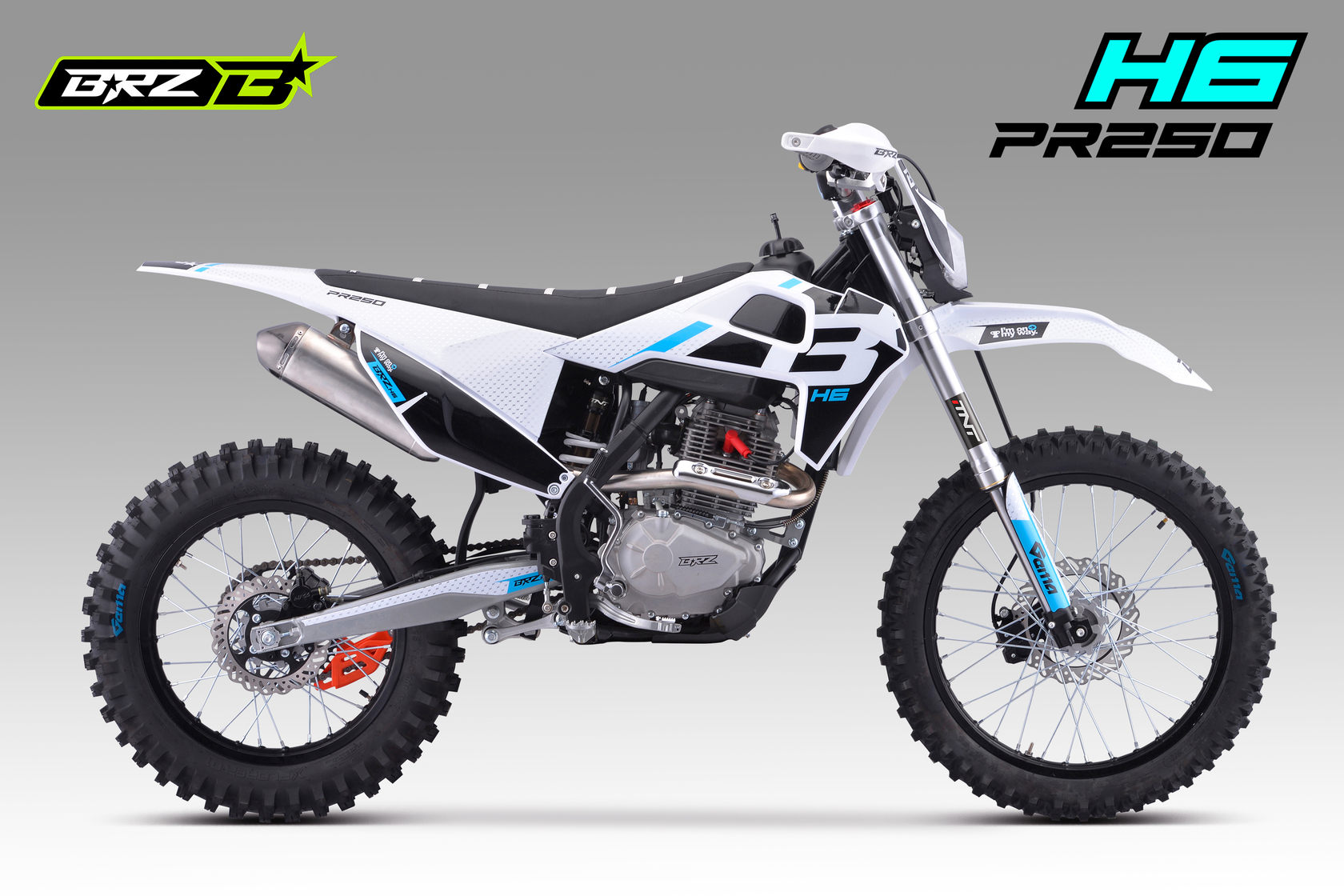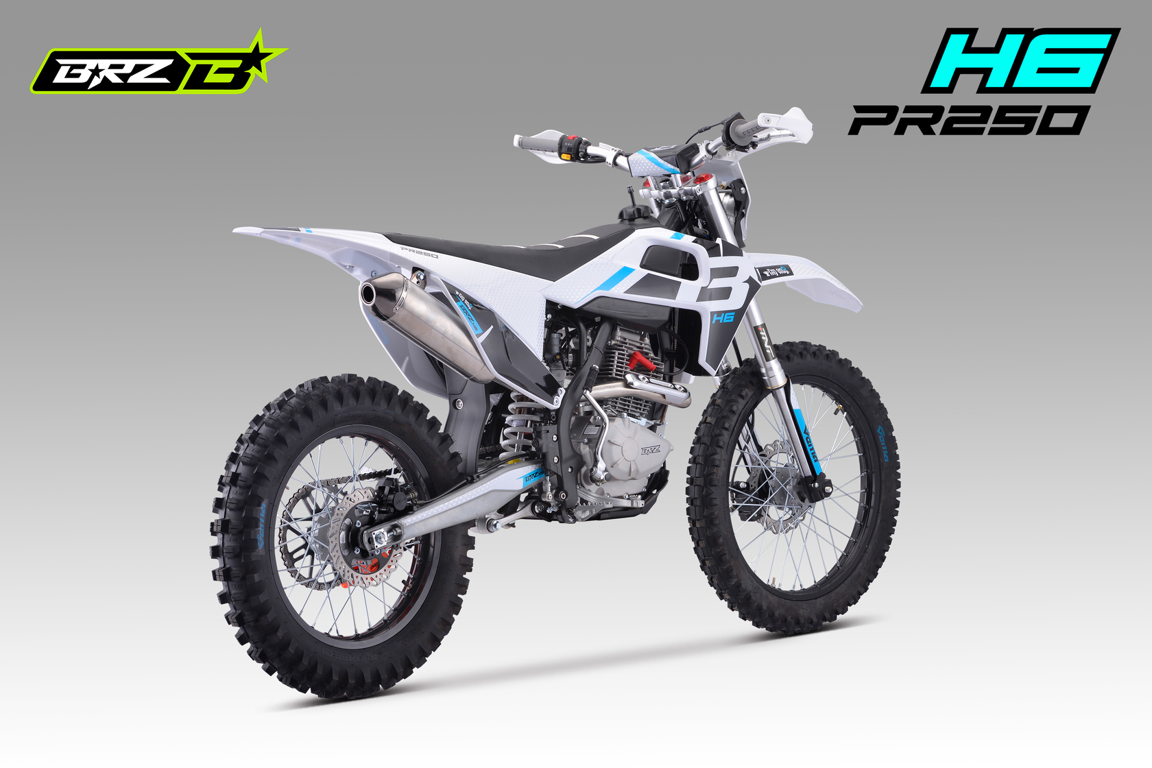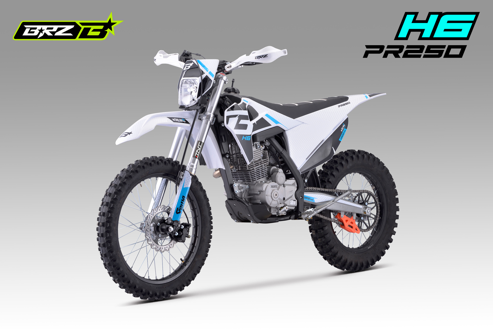 BRZ H6 PR250 21/18 - ваш пропуск в мир приключений. Надежный двигатель ZONGSHEN ZS172FMM-5A с баланс.валом в паре с карбюратором Nibbi Racing PE30 выдает превосходные мощность и тягу. Короткоходная ручка газа обеспечивает мгновенную реакцию. Воздушное охлаждение обеспечивает надежность и простоту эксплуатации, а пластик в стиле Husqvarna подчеркивает его стильный вид. BRZ H6 PR250 21/18 - это ваш верный спутник в мире эндуро. Он обладает всем необходимым, чтобы вы могли покорять бездорожье с уверенностью: Счетчик моточасов для контроля состояния двигателя, защита рычагов. Мягкая резина Gema для уверенного сцепления с любой поверхностью. Небесно-голубой цвет придает мотоциклу легкость и свежесть. С BRZ H6 PR250 21/18 вы ощутите свободу и драйв!