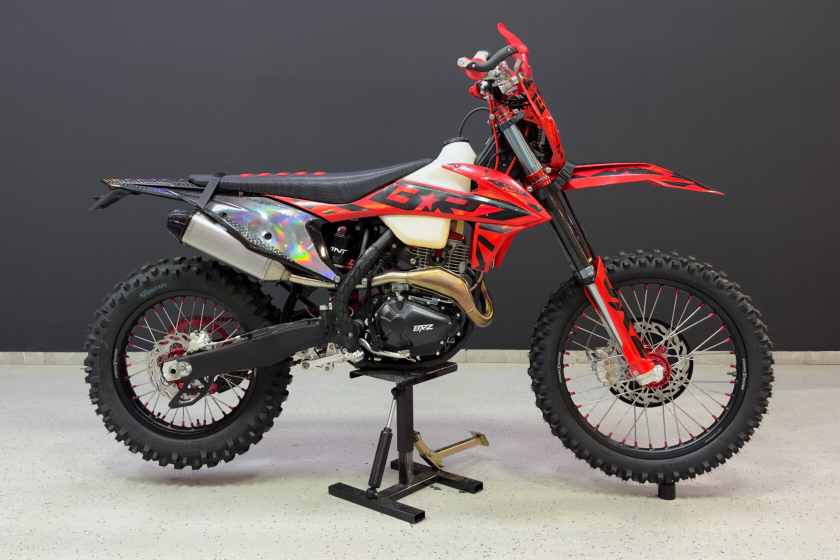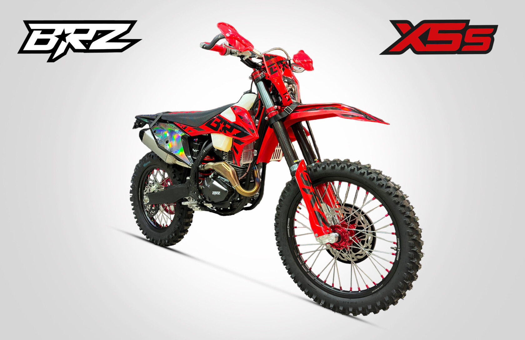 Мотоцикл BRZ X5S 2023 года - полноразмерный эндуро мотоцикл. Он специально создан для райдеров, которые уже выросли из питбайка и хотят раздвинуть свои пределы.Он подойдет и начинающим эндуристам с ростом от 175 см. X5S идеально себя чувствует в лесных прохватах с преодолением различных препятствий благодаря небольшому весу, тяговитому двигателю и большим колесам 21/18.Мотоцикл максимально упрощен для большей надежности. Из электрики он снабжен светодиодной фарой, электростартером. Установлен двигатель Zongshen ZS172FMM-7 4V с балансировочным валом. По сути в нем просто нечему ломаться, можно смело ездить в лесные мото походы на 40 - 200 км. Инженеры BRZ moto учли все ошибки конкурентов и снабдили мотоцикл качественными подвесками и алюминиевыми ободами Enduro X-Series. Был переработан узел верхнего крепления двигателя к раме, избавивший от повышенных вибраций. Ведомую звезду закрепили на 6 потайных болтов. Ну и не стали экономить на карбюраторе - в базе установленNIBBI RACING BLACK PWK32! Подведя итог можно смело заявить что X5S - идеальный выбор для тех, кто хочет купить настоящий мотоцикл!