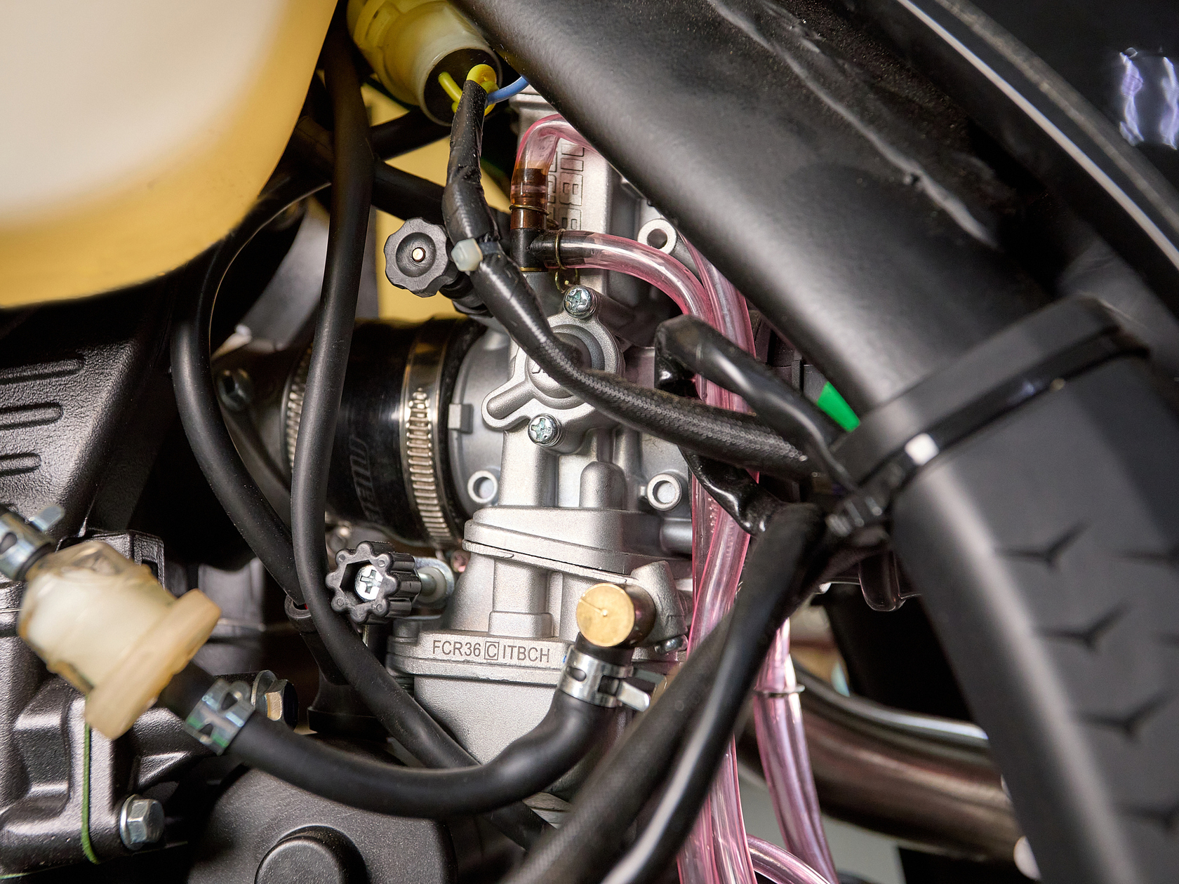 Навесное – Руль 28мм. Короткоходная ручка газа. Цепь 520. Алюминиевая лапка КПП, боковые накладки на рамы. Счетчик моточасов, приборная панель. Стоп сигнал.