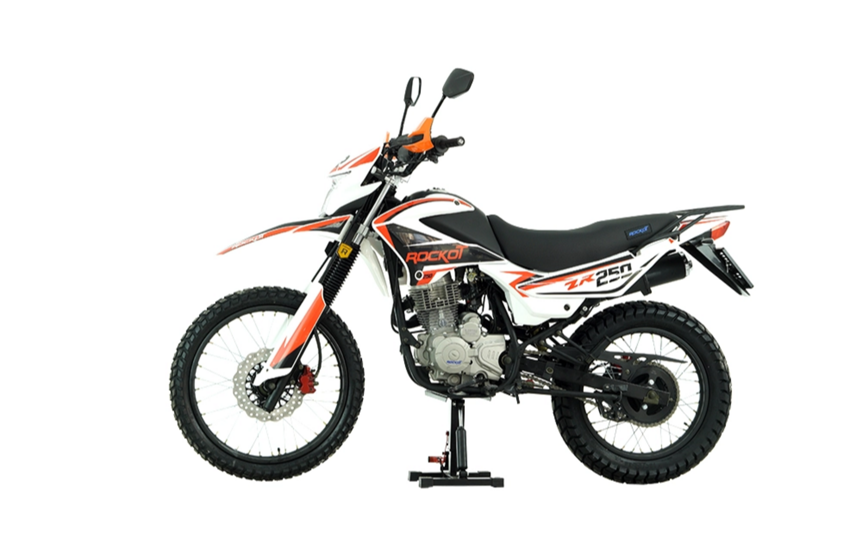 Представляем вашему вниманию новинку сезона 2024 года - бюджетный софт-эндуро мотоцикл ROCKOT ZR250.ZR250 - это полноценный эндуро мотоцикл с электронным ПТС, который был создан для повсеместной езды, будь то асфальтированные дороги общего пользования, грунтовые проселочные дороги и, конечно же, бездорожье. ROCKOT ZR250 выполнен по всем канонам софт-эндуро, а именно: прочный металлический бак, облицовка из мягкого ударопрочного пластика, широкое и комфортное сиденье для водителя и пассажира, а в задней части установлен стальной багажник. Мотоцикл производится в двух вариантах расцветки графики: черно-красной и черно-оранжевой.Дизайн мотоцикла ROCKOT ZR250 напоминает классический эндуро мотоцикл японского производства начала 2000-х годов. Именно эти байки послужили прообразом для создания бюджетного лайт-эндуро мотоцикла. Классическая вилка спереди, безлинковая подвеска сзади и колесная компоновка 21/18 - все это делает мотоцикл стильным, аутентичным, проходимым и доступным. ROCKOT ZR250 оснащен четырехтактным двигателем объемом 223 см³ и мощностью 16 лошадиных сил. Отличительная особенность этого двигателя от других “одноклассников” - это нижний распредвал и привод ГРМ штангами-толкателями. Данная конструкция двигателя является очень простой и надежной.Также, большим преимуществом газораспределительного механизма с приводом на толкателях, считается широкий диапазон крутящего момента во всех диапазонах вращения коленчатого вала.Система питания двигателя - карбюраторная, с высокопроизводительным карбюратором PZ30 с ускорительным насосом, который обеспечивает быстрый отклик на ручку газа, а также стабильную работу даже при холодном запуске. Обогатитель топливной смеси расположен на руле, что делает очень удобным первый запуск.Двигатель оснащен балансирным валом, снижающим уровень вибрации. Мотоцикл построен на прочной стальной раме, окрашенной в черный матовый цвет. Мотоцикл оборудован подножками для перевозки пассажира. Подрамник также выполнен из стали, к которому крепится металлический багажник, позволяющий перевозить грузы и установить центральный кофр.. Подвеска ROCKOT ZR250 типична для данного класса мотоциклов - софт-эндуро. Это классическая вилка спереди, длиной 840 мм, и моноамортизатор, длиной 300 мм, сзади. Система рычагов прогрессии отсутствует, что облегчает эксплуатацию и обслуживание подвески мотоцикла. Несмотря на классическую простоту амортизаторов, они позволят комфортно ездить по бездорожью даже с пассажиром. Спереди и сзади установлена дисковая гидравлическая тормозная система. Передний тормозной диск увеличенного диаметра - 270 мм, который работает в паре с двухпоршневым суппортом. Задняя тормозная система имеет диск диаметром 240 мм и однопоршневой суппорт. Гидролиния тормозной системы состоит из армированных шлангов, которые обеспечивают наилучший отклик тормозной системы и повышенную надёжность всей системы. ROCKOT ZR250 с завода комплектуется универсальными туристическим шинами, позволяющими передвигаться по любому типу поверхностей. Передняя шина имеет размерность 90/90-21, а задняя - 120/90-18. Шины установлены на прочные стальные диски, окрашенные в черный матовый цвет.Привод на заднее колесо осуществляется цепью с шагом 520. Ведомая приводная звезда из стали насчитывает 45 зубьев. Кому подойдет эндуро мотоцикл ROCKOT ZR250Колесна