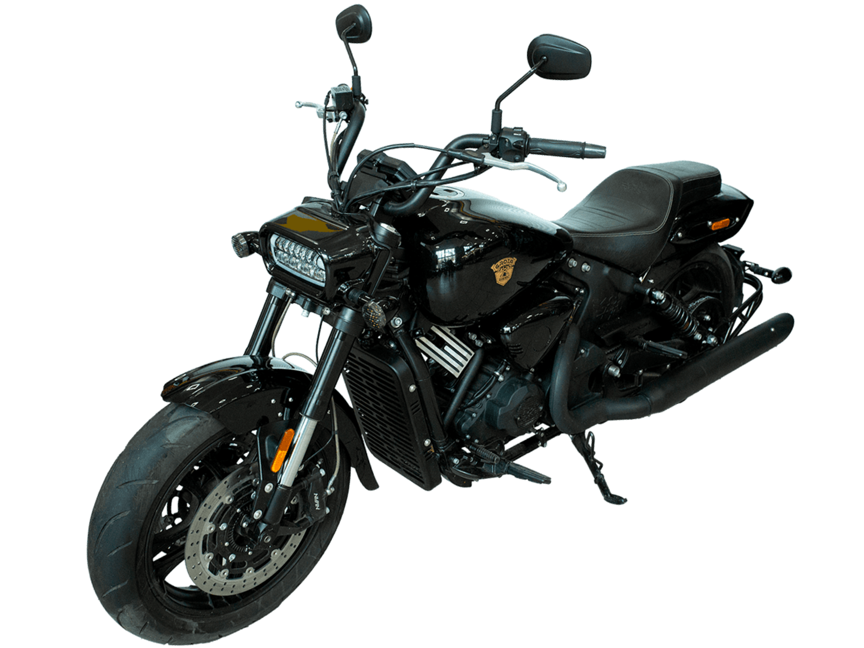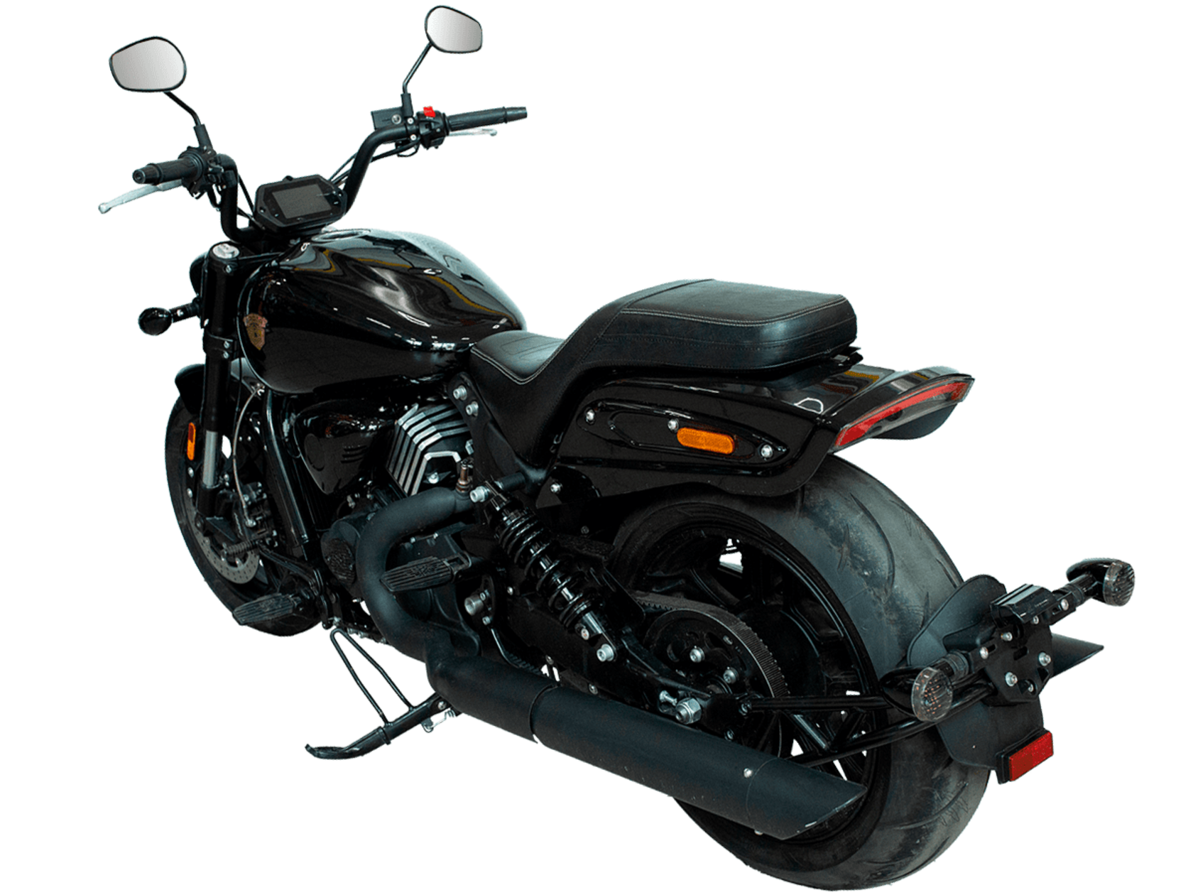 GROZA YL800 – великолепный круизёр, который подойдёт как для повседневной городской езды, так и для комфортного перемещения на длинные дистанции. Его дизайн исполнен в классическом стиле, соответствующем всем канонам данного типа мотоциклов.Двухцилиндровый V-образный двигатель объёмом 800 см3 мощностью 61 л.с. при высоких показателях динамики и отличном крутящем моменте способен разгонять аппарат до 180 км/ч. Инжекторный впрыск топлива с инжектором DELPHI увеличивает топливную экономичность, а также позволяет добиться высокой приёмистости и неприхотливости агрегата. Привод на ведущее колесо осуществляется ремнём знаменитой марки USA Gates. Жидкостная система охлаждения не допустит перегрева мотора даже при самом агрессивном вождении.Аппарат имеет 6-ступенчатую механическую коробку передач с классической схемой “1-N-2-3-4-5-6”. На мотоцикл установлены литые алюминиевые диски диаметром 17 дюймов. Ширина передней покрышки – 140 мм, задней – 200 мм. С неровностями дороги эффективно справляются телескопическая вилка перевёрнутого типа спереди и маятник с двумя газонаполненными амортизаторами сзади. Подвеска имеет 7 ступеней регулировки, что обеспечивает лёгкую перестройку на различные режимы езды. Для всего класса круизёров такая опция – большая редкость. Эффективное и безопасное замедление с любых скоростей обеспечивают гидравлические дисковые тормоза спереди и сзади от компании NISSIN.Аппарат оснащён своеобразной и очень привлекательной по дизайну светодиодной оптикой, а также бортовым компьютером и ярким и информативным дисплеем.Мотоцикл сочетает в себе отличные технические характеристики, богатое оснащение, комфорт и надёжность, что позволяет вам ощутить настоящую свободу на любой дороге.