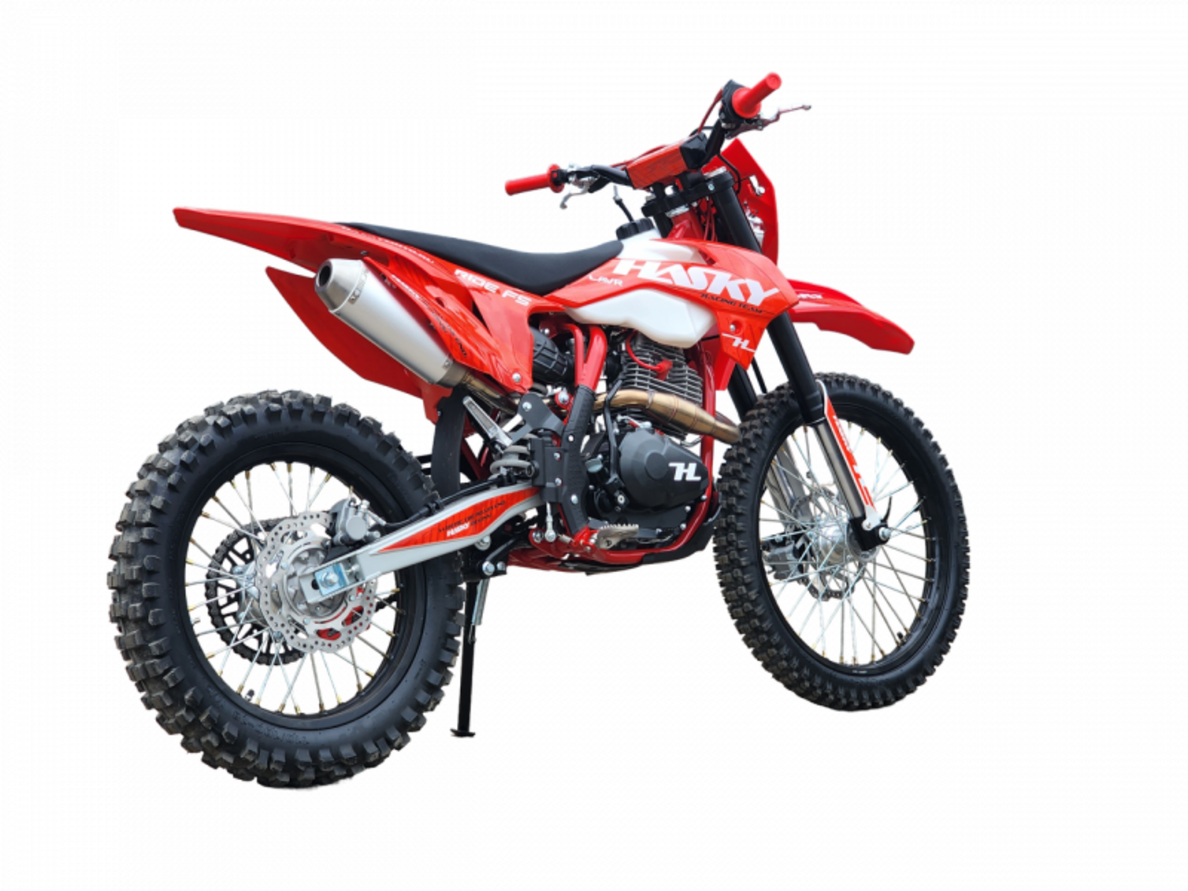 Hasky F5 Ride 2025 представляет собой самую доступную модель в линейке бренда, отличаясь от старшей F5 PRO 2025 комплектацией, но сохраняя при этом надежность и качество, присущие семейству Hasky. Этот среднеразмерный эндуро-мотоцикл на колесах 21"/18" построен на прочной раме K5.В основе модели лежит надежный двигатель Loncin TM300, оснащенный балансировочным валом для снижения вибраций, пятиступенчатой коробкой передач и комбинированной системой запуска (электростартер + кик-стартер). Подачу топлива обеспечивает производительный карбюратор Nibbi PE 30 Race. Управляемость и комфорт на бездорожье обеспечивают передняя регулируемая вилка MTN диаметром 43 мм и задний моноамортизатор.Мотоцикл комплектуется передним колесом 21" с покрышкой 80/100-21 и задним 18" с покрышкой 110/100-18, оснащенными фиксаторами. Эргономика управления улучшена за счет новых пультов в стиле KTM, ручки газа Nibbi и грипсы lock-on. Защита двигателя, рамы и перьев повышает долговечность. Дополнительные удобства включают подножки для пассажира, пеги увеличенной ширины от AJ1, мощную светодиодную фару и счетчик моточасов.Особое внимание уделено безопасности и надежности: воздушный фильтр увеличенной площади изготовлен из негорючего материала, а вся проводка мотоцикла полностью влагозащищенная. В комплект также входит набор инструментов AJ1, а новая усиленная графика придает модели стильный вид. Hasky F5 Ride 2025 предлагает отличное сочетание цены, надежности и оснащения для начинающих и опытных райдеров.