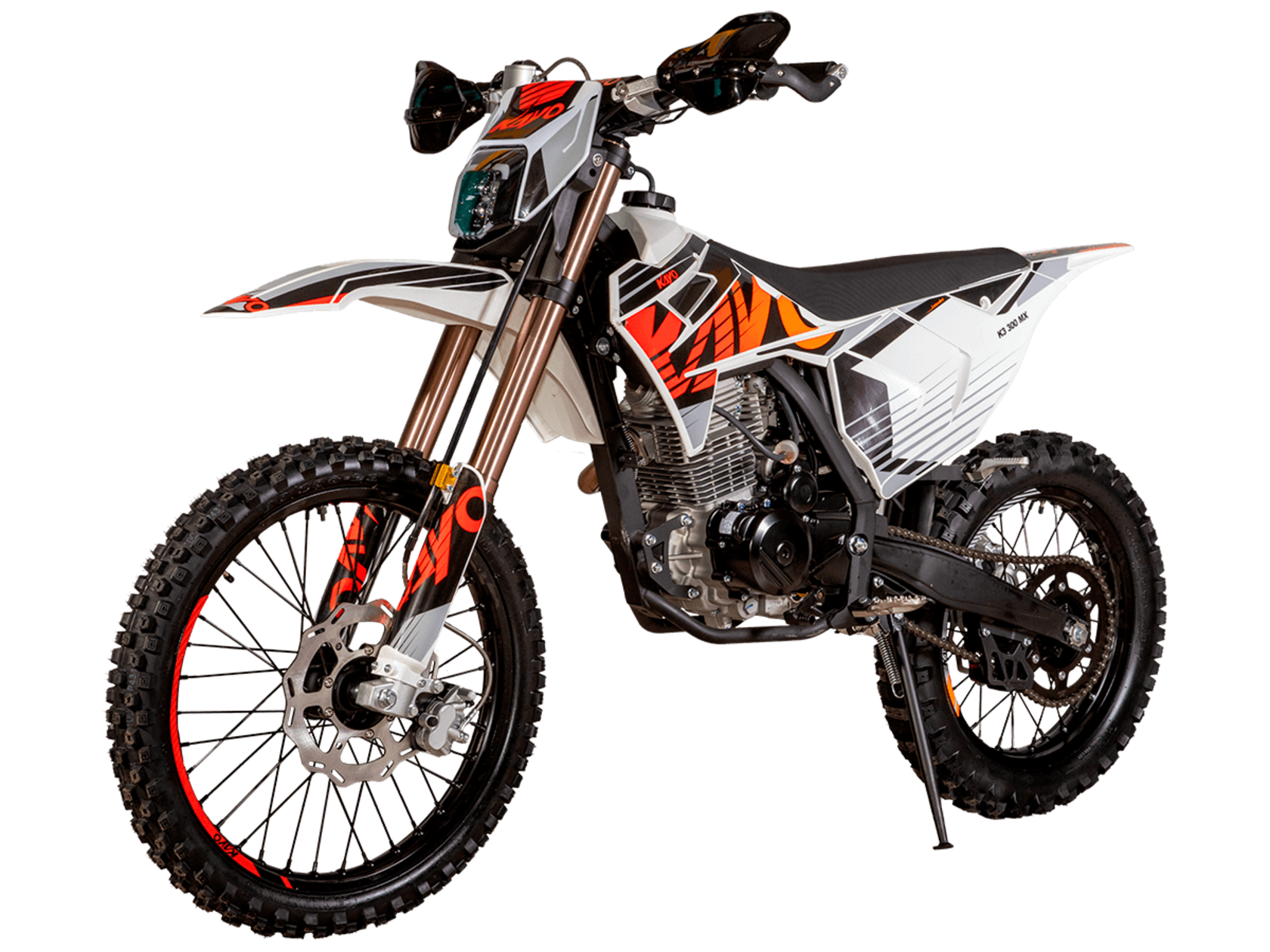 Мотоцикл KAYO K3 300 MX 21/18 2025 – эндуро мотоцикл, который пришёл, чтобы стать новым хитом среди среднеразмерных моделей!Мотоцикл оснащён одноцилиндровым 4-тактным двигателем ZONGSHEN PR300/ZS175FMM-5 объёмом 271,3 см³ с балансирным валом и воздушным типом охлаждения. Максимальная мощность в 21,75 л.с. достигается при 8500 об/мин, а максимальный крутящий момент 22 Нм при 6500 об/мин. Соотношение диаметра и хода поршня 75,0х61,4. Степень сжатия 9,29:1. Карбюратор NIBBI PE30 обеспечивает топливную экономность и бесперебойную работу в самых сложных заездах. На мотоцикле установлена 5-ступенчатая коробка передач и цепной привод. Запуск двигателя осуществляется с помочью электростартера или кикстартера. Объём топливного бака 10 литров.Спицованные колёса с алюминиевыми ободами имеют диаметр 21 дюйм спереди и 18 сзади. Для подвески спереди используется телескопическая вилка перевёрнутого типа длиной 830 мм, а сзади установлен моноамортизатор длиной 450 мм. Оба компонента регулируются. На мотоцикле установлены гидравлические дисковые тормоза с 2-поршневой системой спереди и однопоршневой сзади.Мотоцикл готов к самым суровым вызовам бездорожья. Удобное расположение фильтр-бокса позволяет легко обслуживать его после заездов. Руль оснащён алюминиевой защитой рук с высокими пластиковыми накладками. На мотоцикле используются ручки-«неломайки» с регулировкой положения рычага и короткоходная ручка газа.Габариты 2100х810х1180 мм, вес 109 кг. Клиренс 340 мм, колёсная база 1390 мм, высота по седлу 900 мм.