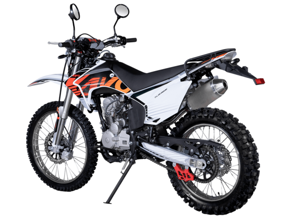 Мотоцикл KAYO T1-L 250 Enduro 21/18 2025 ПТС – облегчённая модель надёжного и производительного эндуро, уже готовая к покорению внедорожных трасс.Оснащён 4-тактным двигателем объёмом 223 см³ с верхним распредвалом и воздушным типом охлаждения. Способен развивать мощность в 16,32 л.с. при 8500 об/мин, а максимальный крутящий момент 17,5 Нм достигается при 6500 об/мин. За подачу топлива отвечает карбюратор PE30. Он обеспечивает топливную экономность и бесперебойную работу двигателя даже в самых жёстких условиях. Соотношение диаметра цилиндра и хода поршня 65,5x62,2. Степень сжатия 9,6:1. Запуск двигателя осуществляется с помощью электростартера или кикстартера. Тип зажигания CDI. Снизу установлена пластиковая защита двигателя.Механическая коробка передач имеет 5 ступеней. Привод цепной. Объём топливного бака 9 литров.На мотоцикл установлены спицованные колёса с алюминиевыми ободами и ступицами. Обуты во внедорожные покрышки YUANXING 80/100-21 и 110/100-18.Длина подвески спереди 830 мм, длина задней подвески 370 мм. Задняя подвеска оснащена прогрессией. Траверсы выполнены из литого алюминия, а прогрессия – из стали. За торможение отвечают дисковые гидравлические тормоза.Прочная рама и маятник выполнены из стали. Мотоцикл имеет ПТС и оснащён всем необходимым для поездок по дорогам общего пользования: галогеновая фара, диодные поворотники, диодный стоп-сигнал, звуковой сигнал, цифровая приборная панель, зеркала заднего вида.Для управления установлен руль переменного сечения 28 мм Fatbar со стандартными рычагами сцепления и тормоза. Имеется платформа для перевозки грузов и дополнительные подножки для поездок с пассажиром.Габариты мотоцикла 2100х810х1180 мм, вес 115 кг. Клиренс 300 мм, колёсная база 1400 мм, высота по седлу 890 мм.
