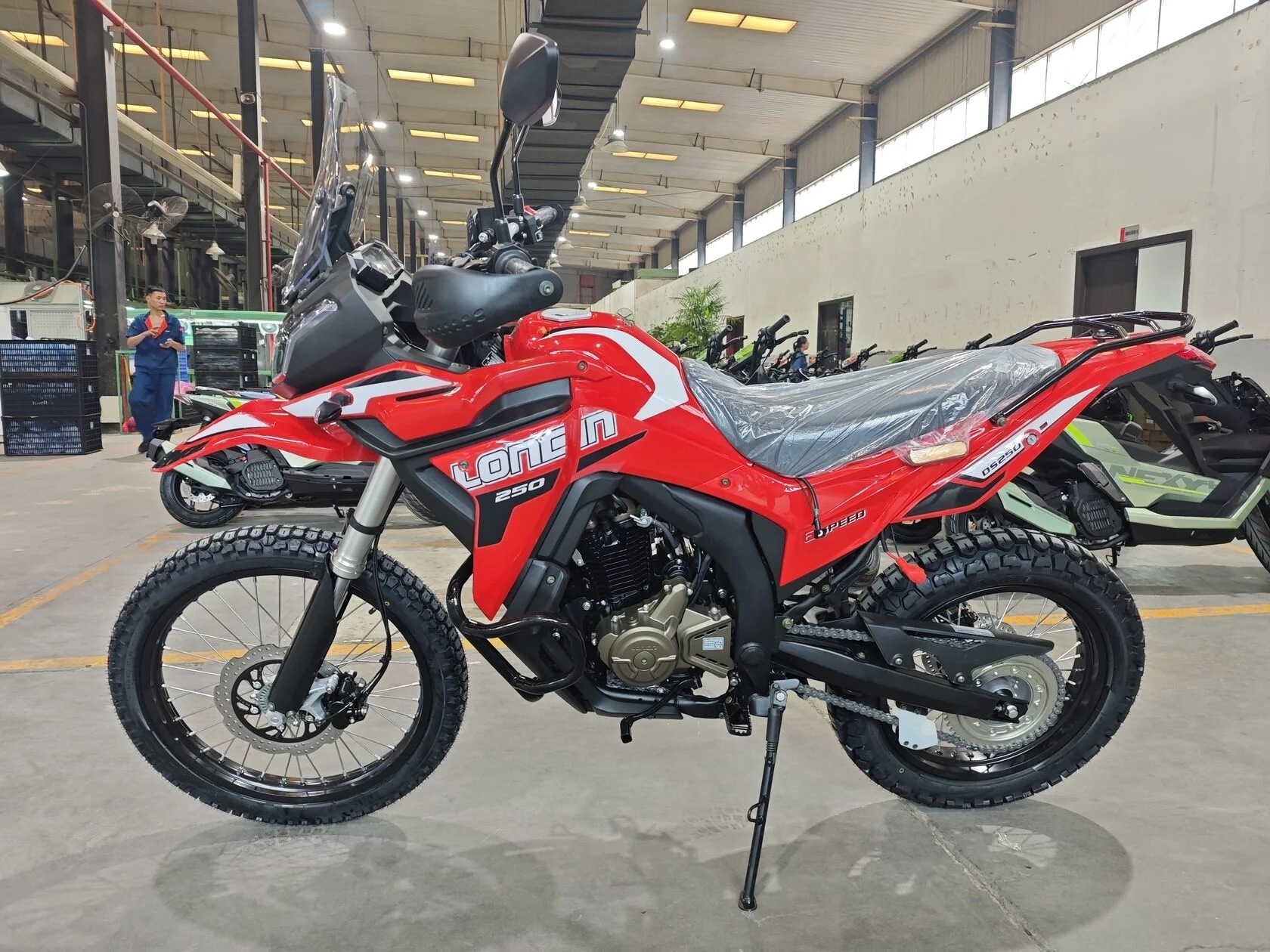 Loncin DS 250 - туристический эндуро.Создан на базе раллийного мотоцикла VOGE 300Rally. Современная жёсткая диагональная рама позволяет стабильно управлять мотоциклом на бездорожье, а продвинутая диодная оптика и ветрозащита – комфортно передвигаться по трассе. Это серьёзная и сбалансированная туристическая техника для мотопутешествий по любым дорогам. Надёжный новый двигатель собственной разработки Loncin, презентованный в 2023 году: 4х-клапанный, на воздушно-масляном охлаждении, с балансиром-эксцентриком и 6-ступенчатой коробкой передач.Каждый из этих мотоциклов полностью отвечает своему предназначению – быть верным и надёжным компаньоном для решения поставленных задач. Для энергичных и рациональных людей, которые ценят время, комфорт, экономичность.Все три модели отлично подходят для новичков – открывая двери в разные классы мотоциклов. Один из этих мотоциклов подойдёт и тому, кто всегда стремится выбирать неприхотливость, надёжность и комфорт за лучший ценник.Спецификация мотоцикла Loncin DS250 Rally:– Модель: Loncin DS 250 Rally