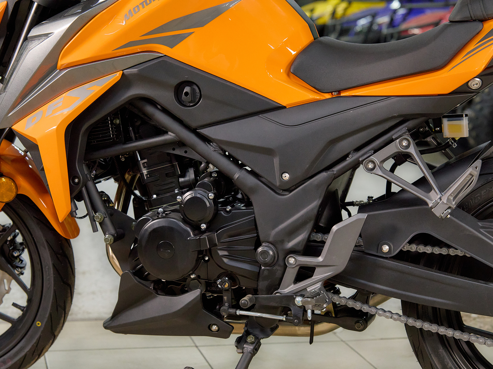 Новинка 2023 года MOTOLAND 250 DF BIG BORE !!!Представляем Вашему вниманию дорожный мотоцикл на шестискоростном двигателе 174 MN (CBS300 с балансиром) , с большим радиатором водяного охлаждения, с электростартером, мощностью 24 л.с. На двигателе установлен карбюратор Keihin PE 34 MV.Также на новинке передние и задние тормоза оснащены 4-х поршневыми суппортами, увеличен R переднего тормозного диска, литые алюминиевые обода , передняя вилка перевёрнутого типа с большим ходом, которая обеспечивает отличную управляемось для комфортного передвижения.Современный дизайн мотоцикла разработан с учетом всех последних новшеств.520Н усиленная сальниковая цепь в сочетании с хорошо подобранными звездами, обеспечивает отличную динамику.Хорошо подобранные покрышки на 17" ободах, 110/70 и140/70, обеспечивают отличное сцепление с дорожным покрытием.Рама скелетная. Удобное двухэтажное кожаное сиденье и обновленная жидкокристаллическая панель приборов с подсветкой - заставят радоваться комфорту и удобству.Передние и задние суппорта 4-х поршневые. Глушитель прямоточный Akrapovic с увеличенным диаметром трубы. Руль двойной усиленный переходного сечения.Передние удлиненные габаритные огни выполнены вертикально и встроены в пластик.Световое оборудование на экономичных и долговечных светодиодах. Топливный бак 12 л. Цвет оранжевый.